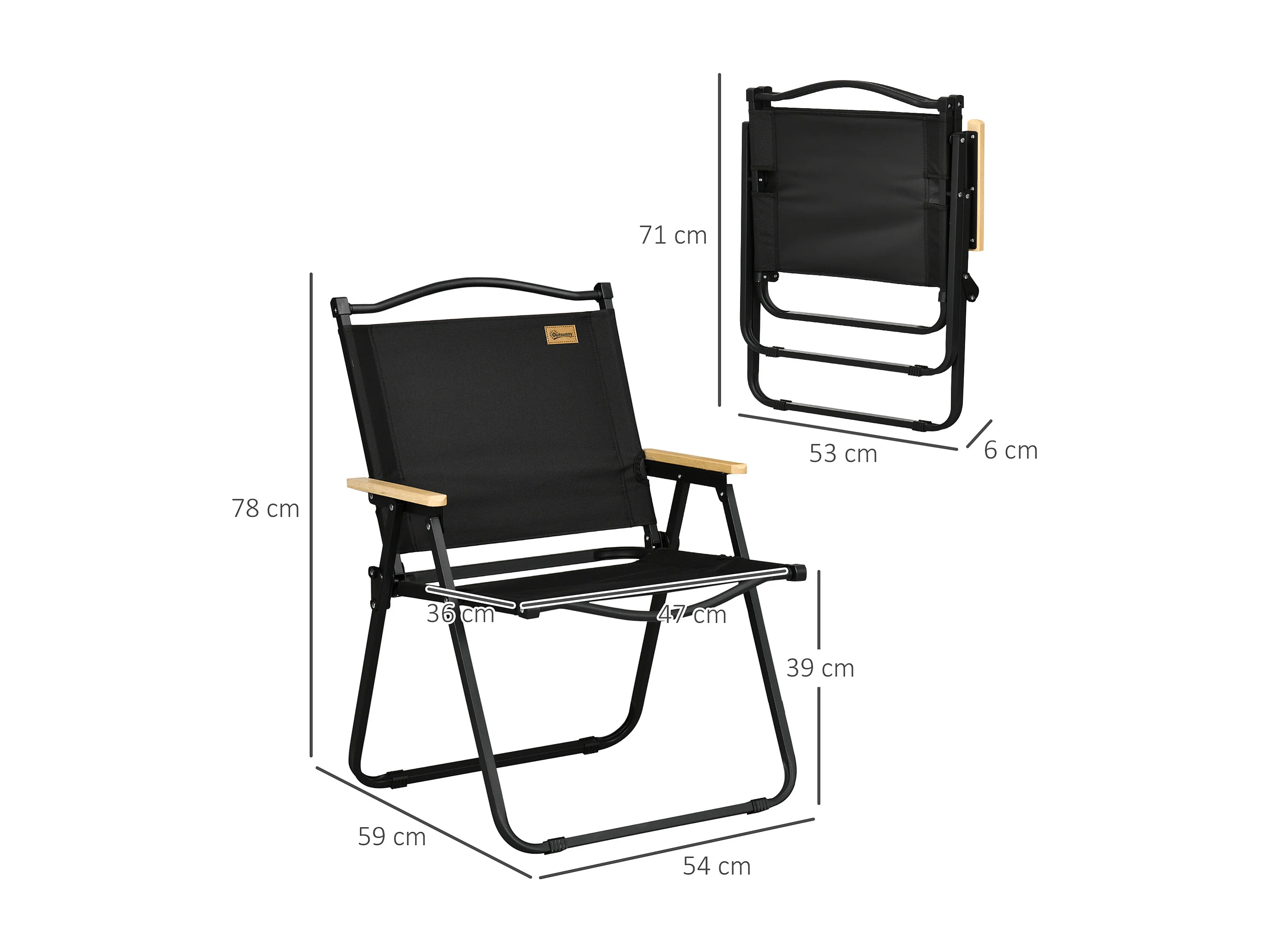 Chaise de plage camping pliante - poignée - structure acier oxford noir