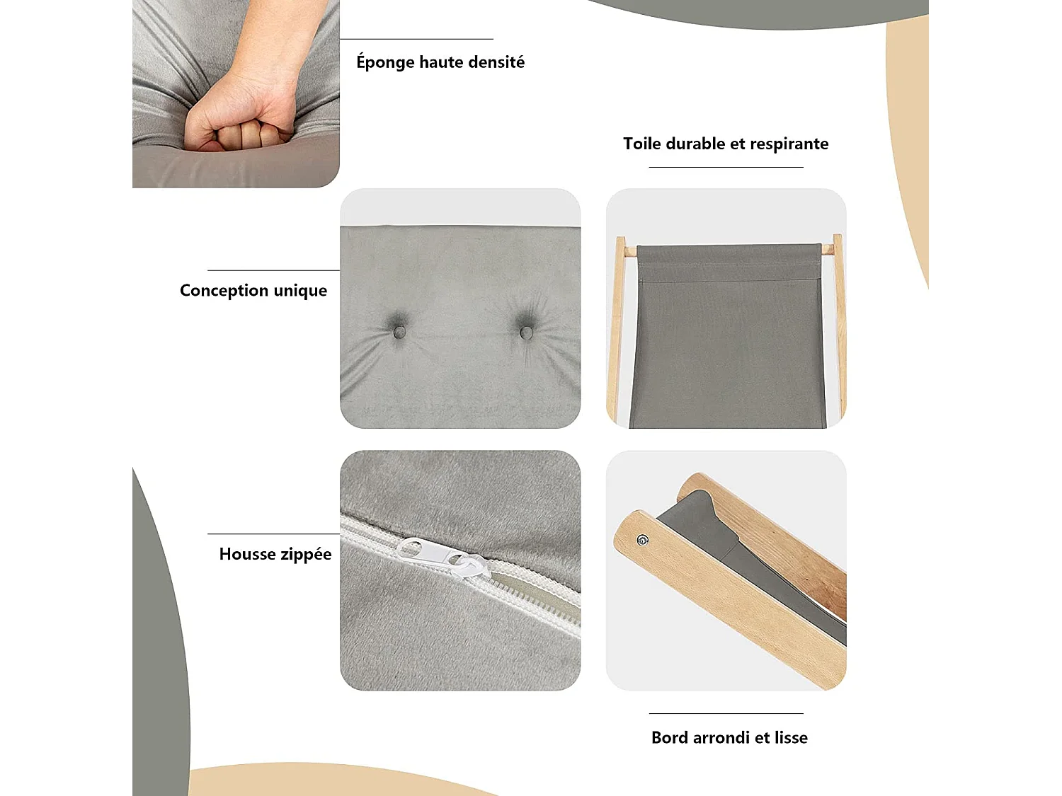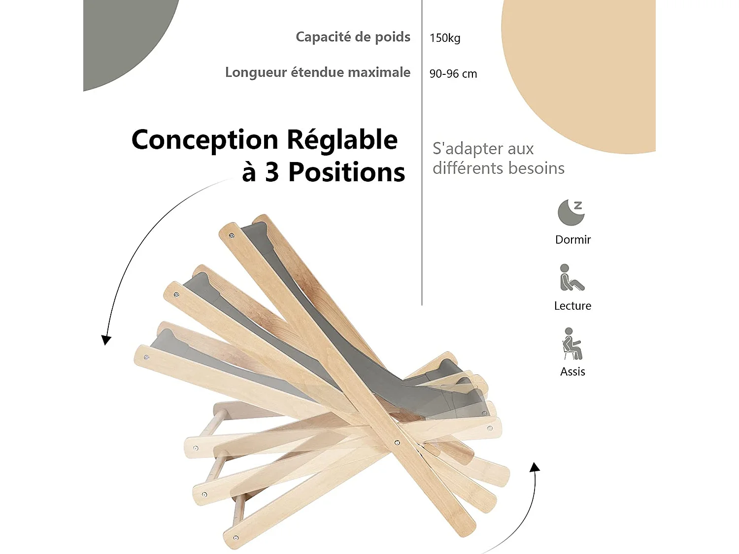 chaise de plage pliable en bois 3 niveaux d'inclinaison cousssin doux amoviblecapacité 150kg
