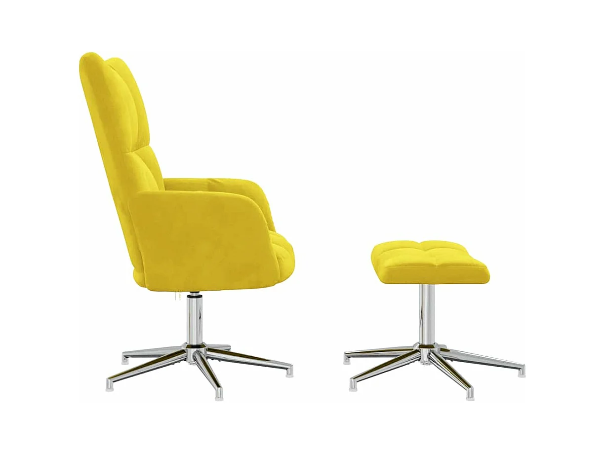 Chaise de relaxation avec tabouret Jaune moutarde Velours