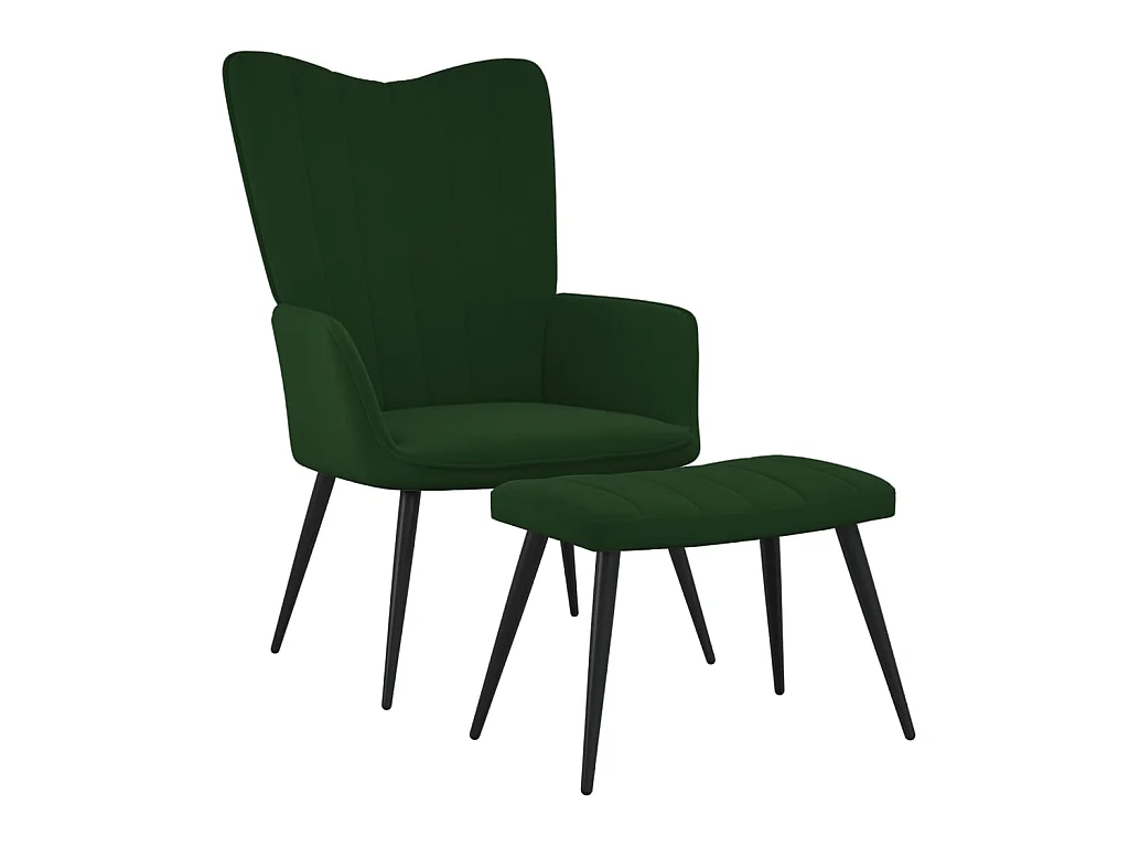 Fauteuil droit avec repose-pied Vert foncé Velours LSJ8255