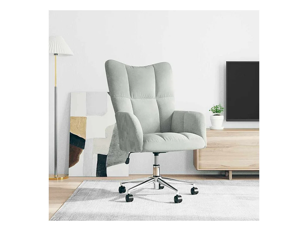 Chaise de bureau pivotante, réglable en hauteur, en velours, gris clair (58x58.5x78-86 cm)