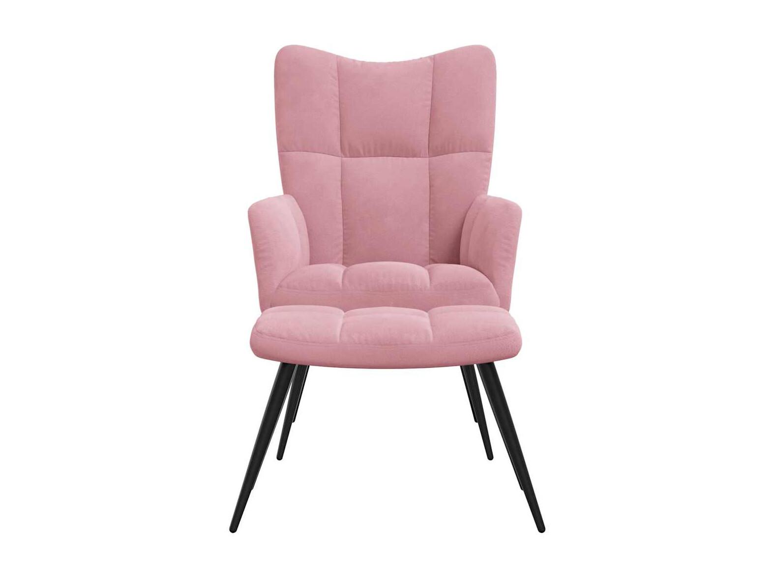 Fauteuil Salon-Chaise de relax-Fauteuil à oreilles avec tabouret rose velours SHL4100