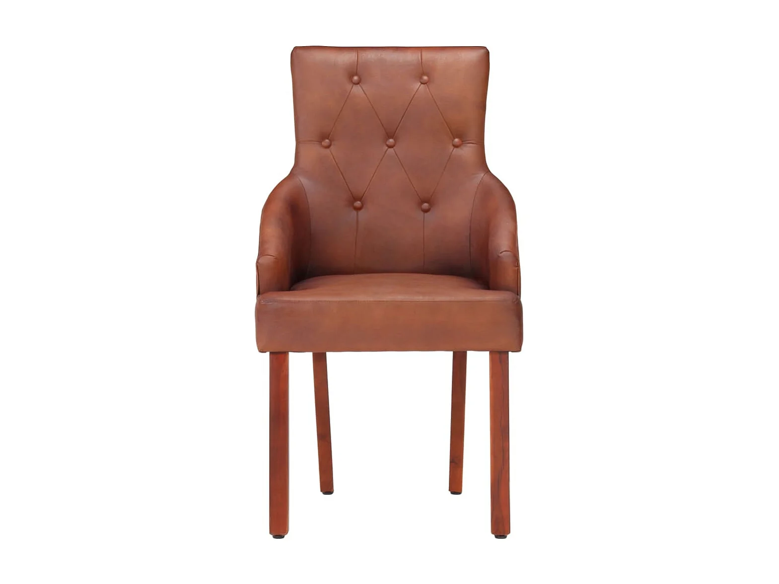 Chaise de salle à manger 2 pc Marron Cuir de chèvre véritable