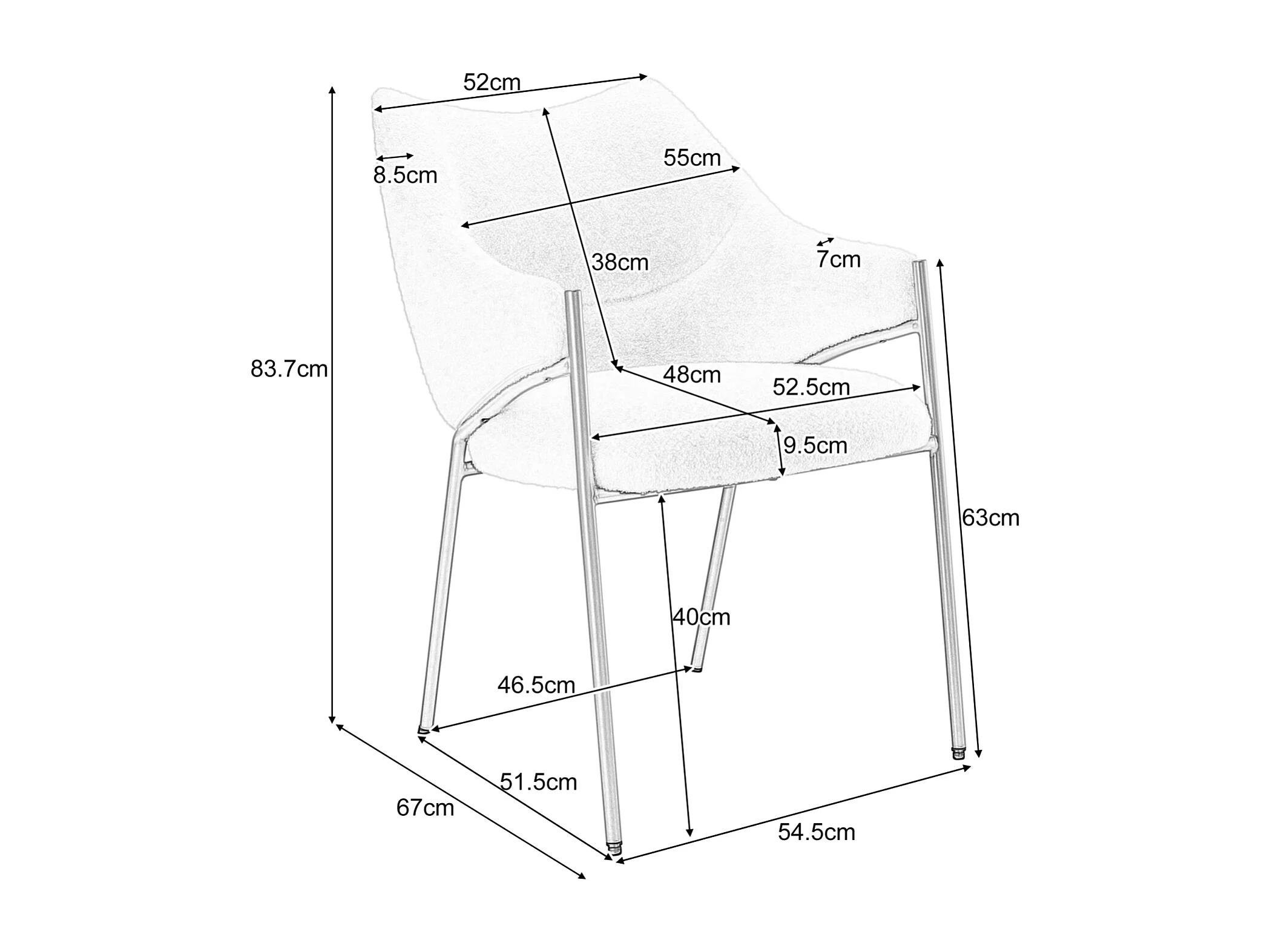 Chaise de salle à manger 4 pc, avec accoudoirs, tissu en peluche d'agneau, coussin de siège épais, 52.5x48x83.7cm beige