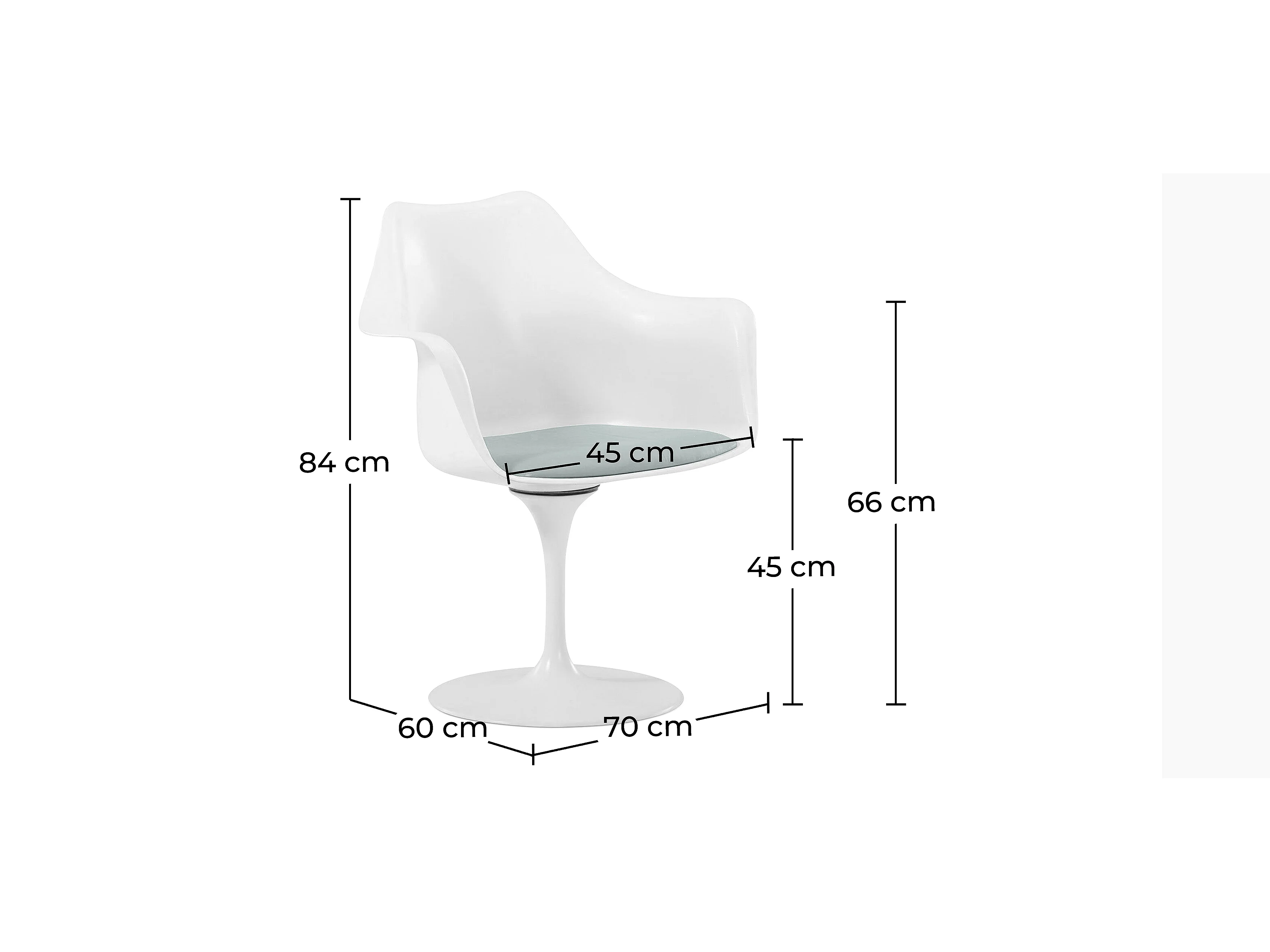 Chaise de salle à manger avec accoudoirs - Chaise pivotante blanche -Tulipan Turquoise