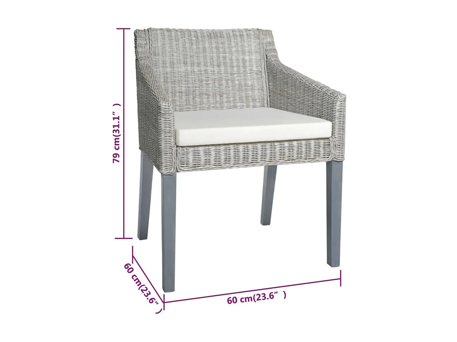 Chaise de salle à manger avec coussin Gris Rotin naturel 2