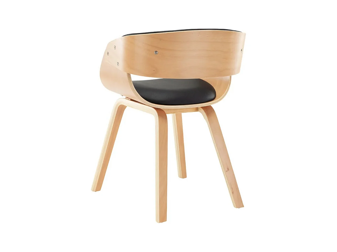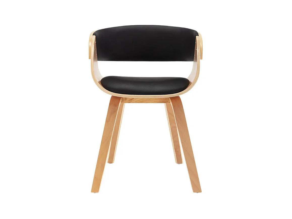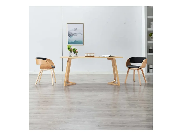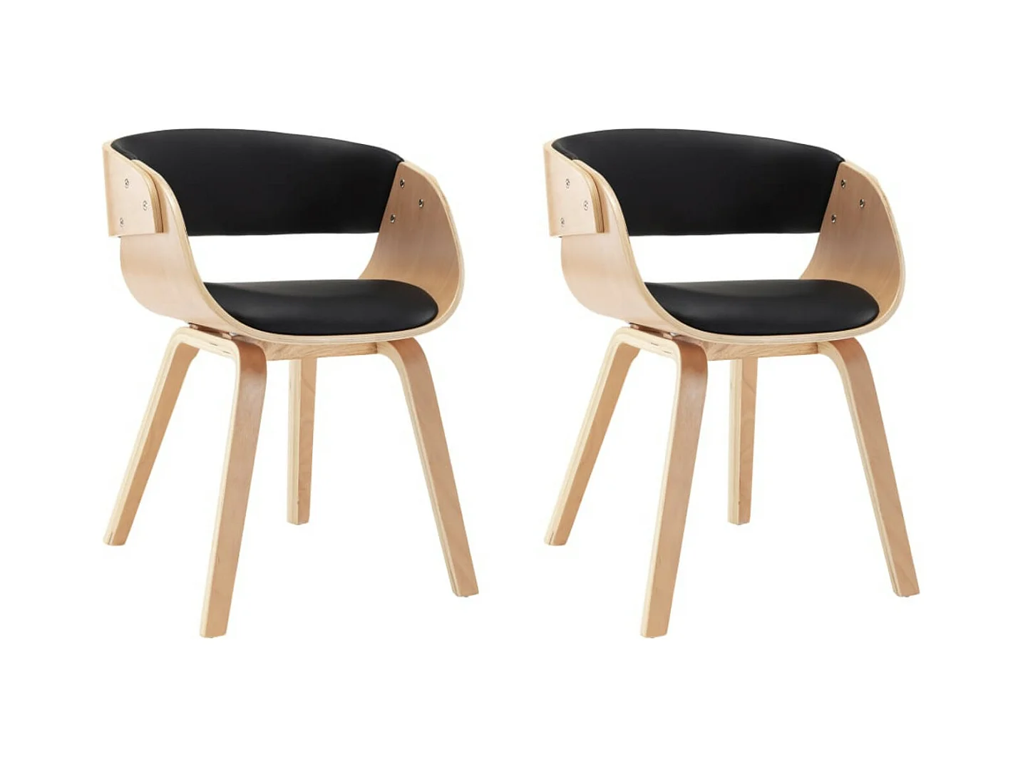 Chaise de salle à manger bois clair et simili cuir noir Onetop - Lot de 2