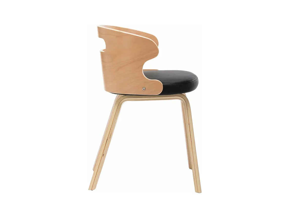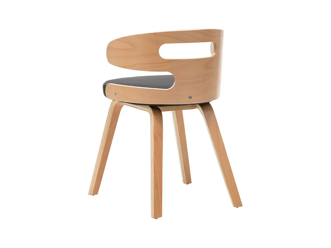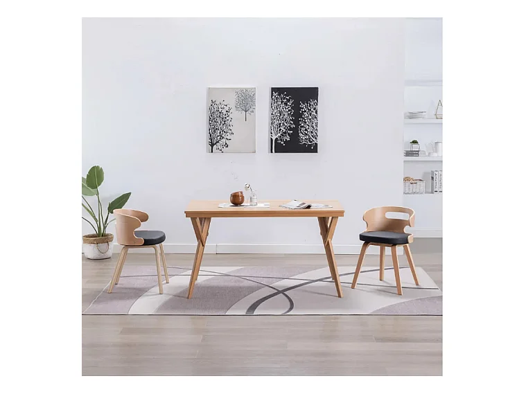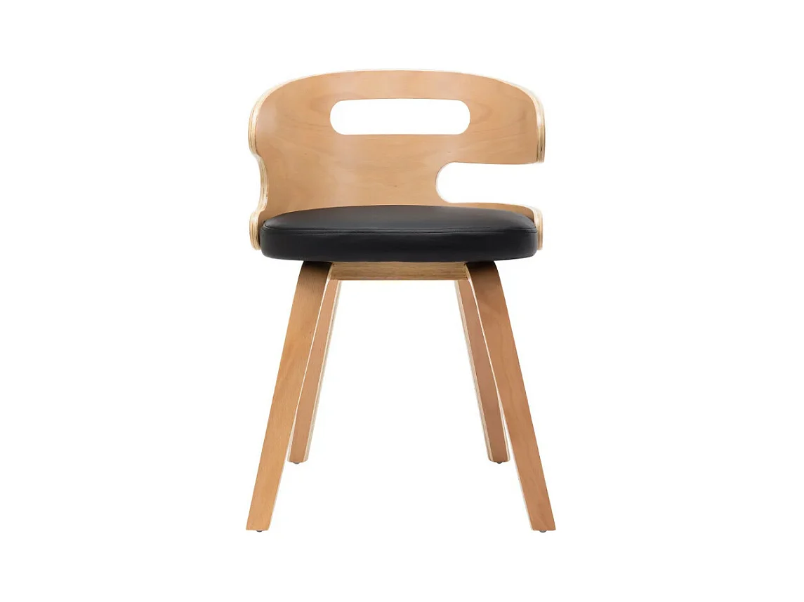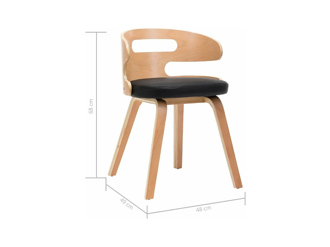 Chaise de salle à manger bois courbé clair et simili cuir noir Laetitia - Lot de 2