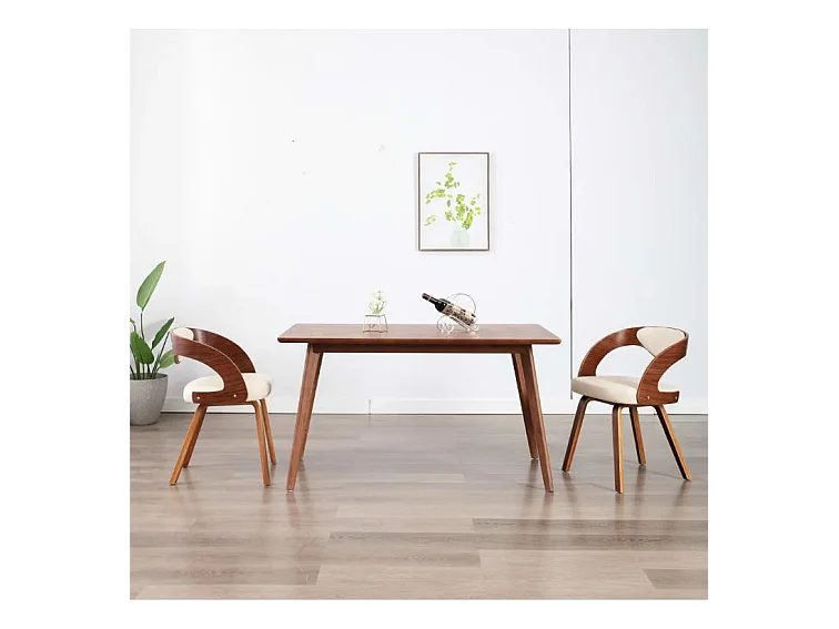 Chaise de salle à manger bois foncé et simili cuir beige Canva - Lot de 2