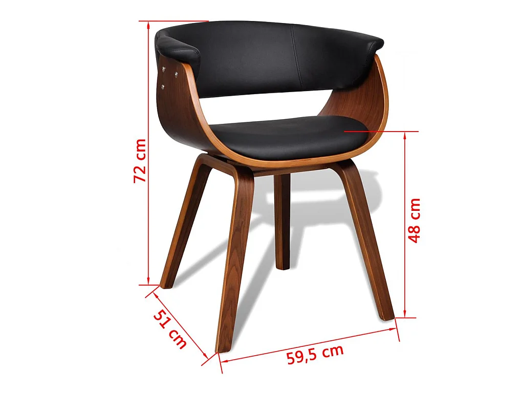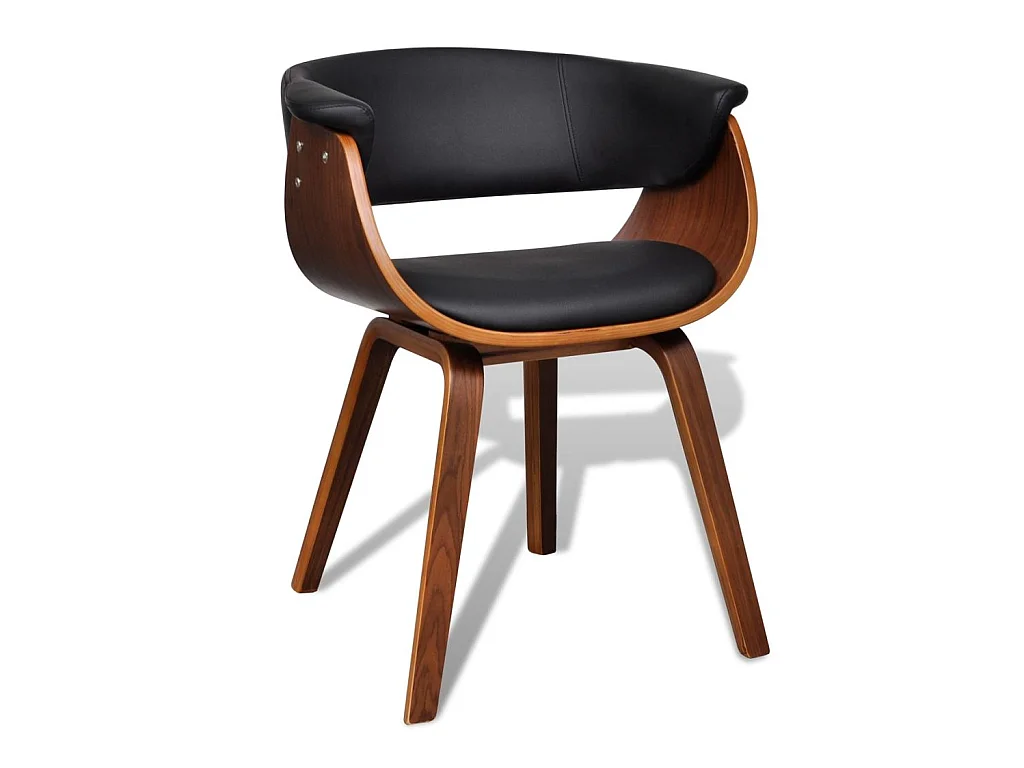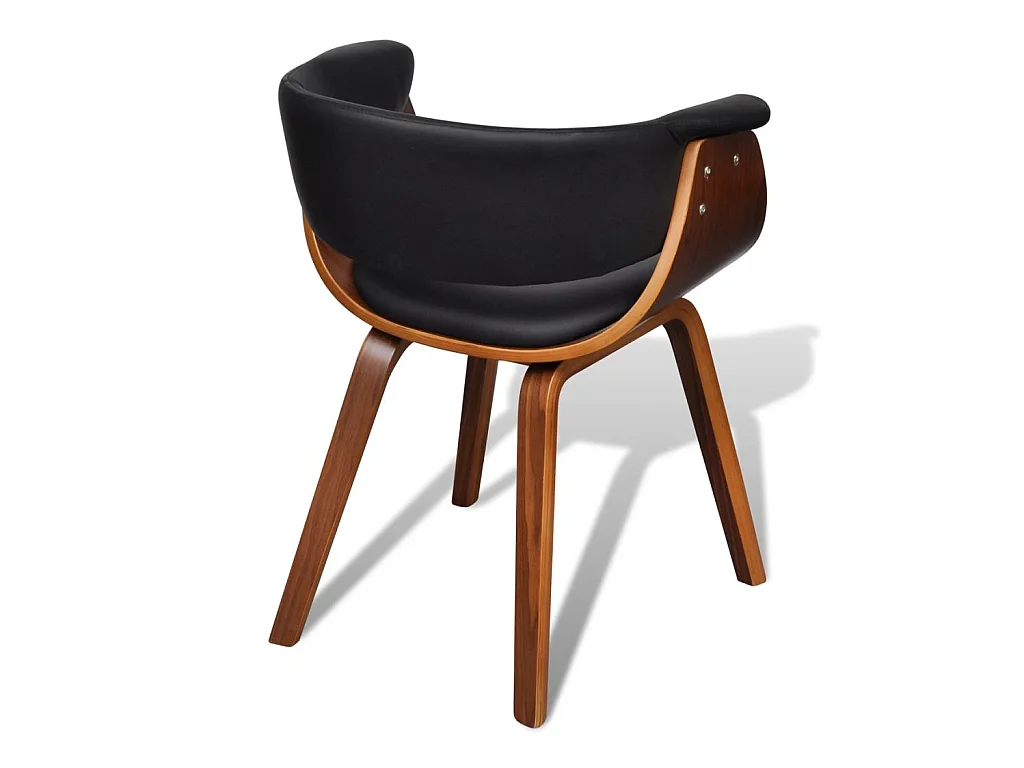 Chaise de salle à manger bois marron courbé et similicuir noir Kobaly