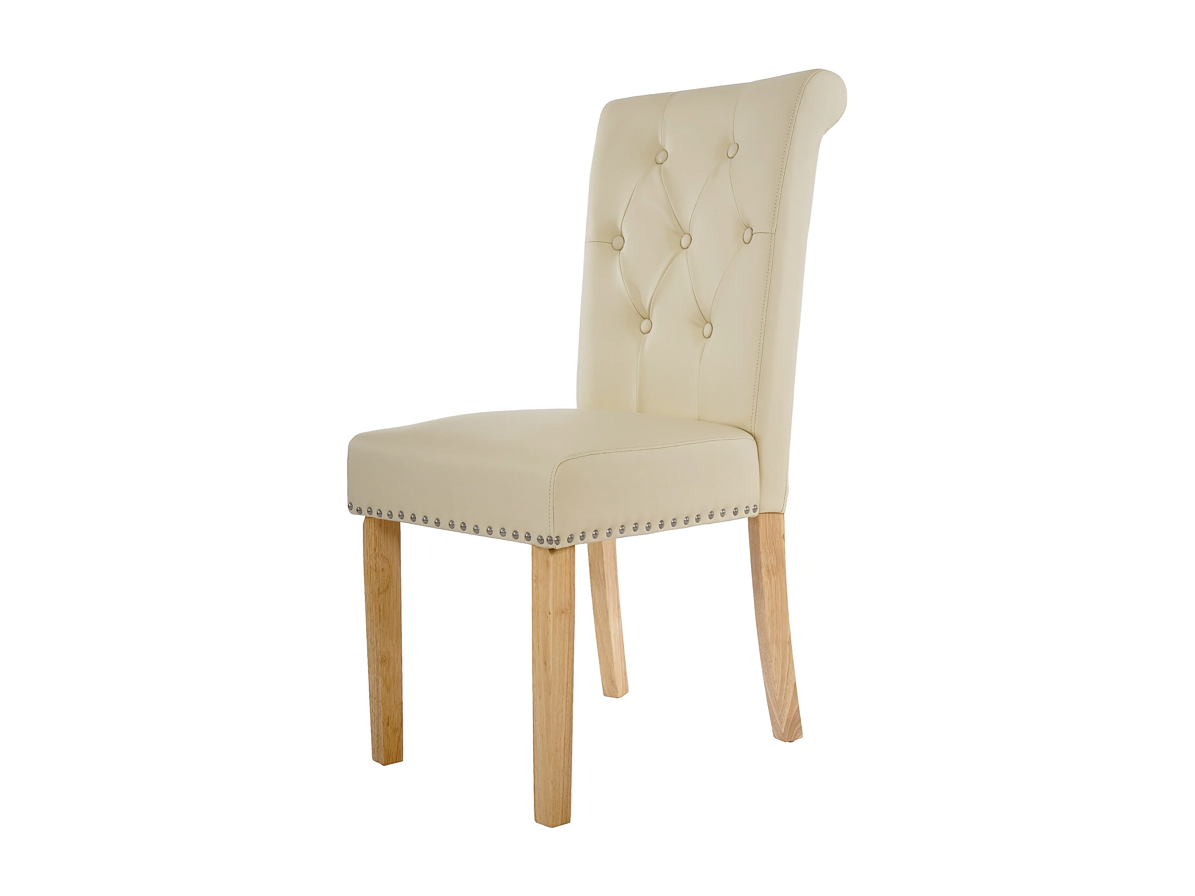 Chaise de salle à manger Chesterfield II (lot de 6), similicuir crème, pieds clairs