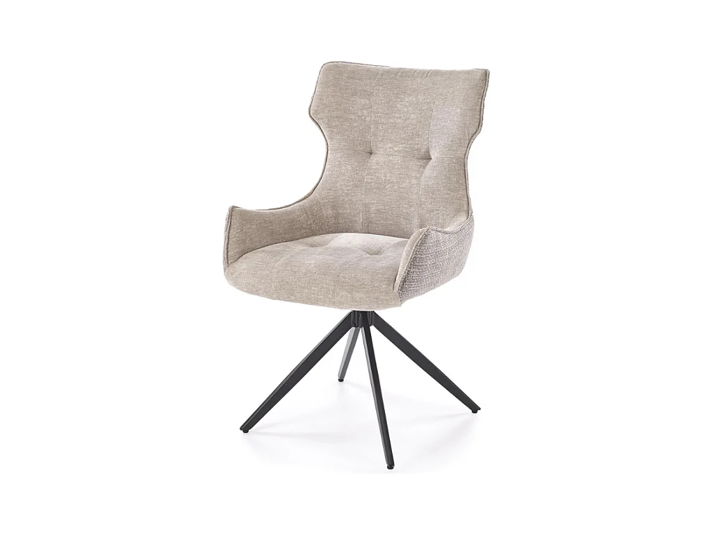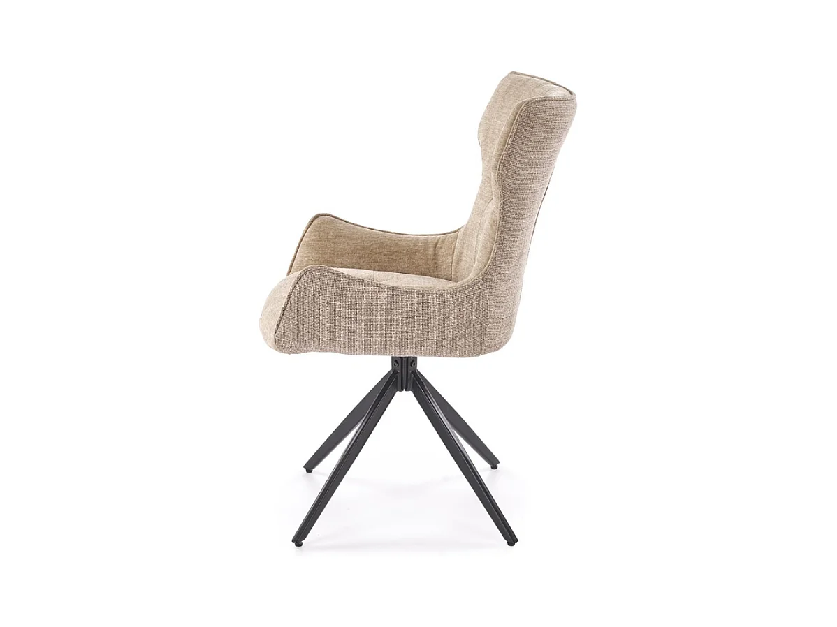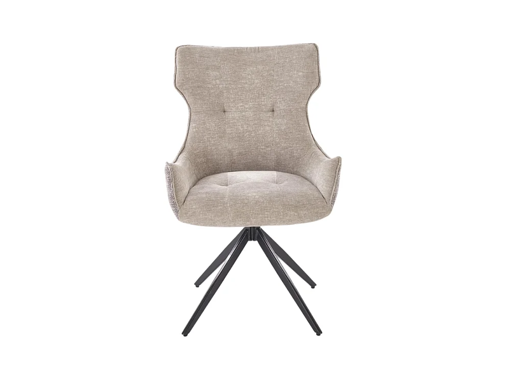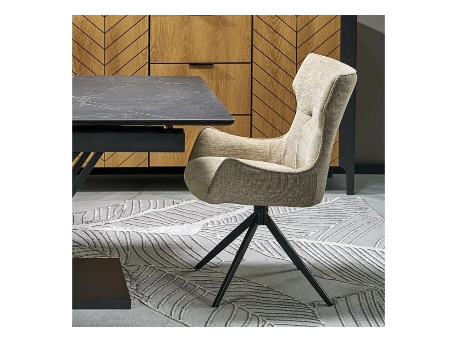 Chaise pivotante en tissu beige et pied en métal noir Mirka