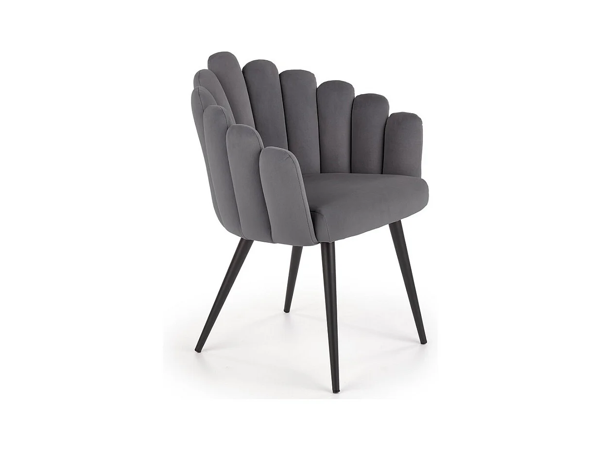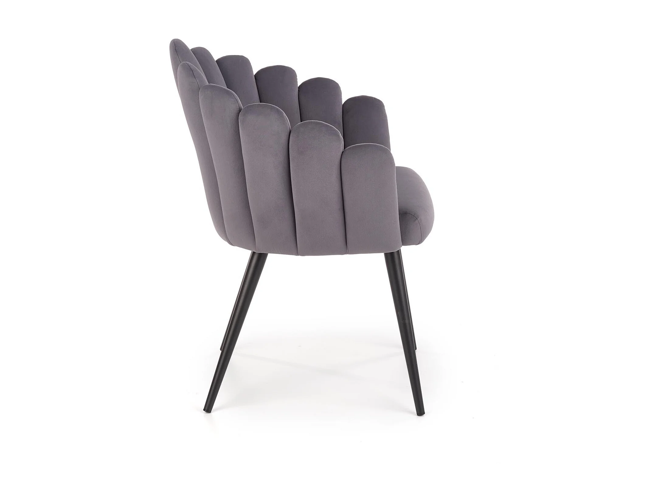 Chaise de salle à manger design en velours gris avec pieds en acier noir Amboise