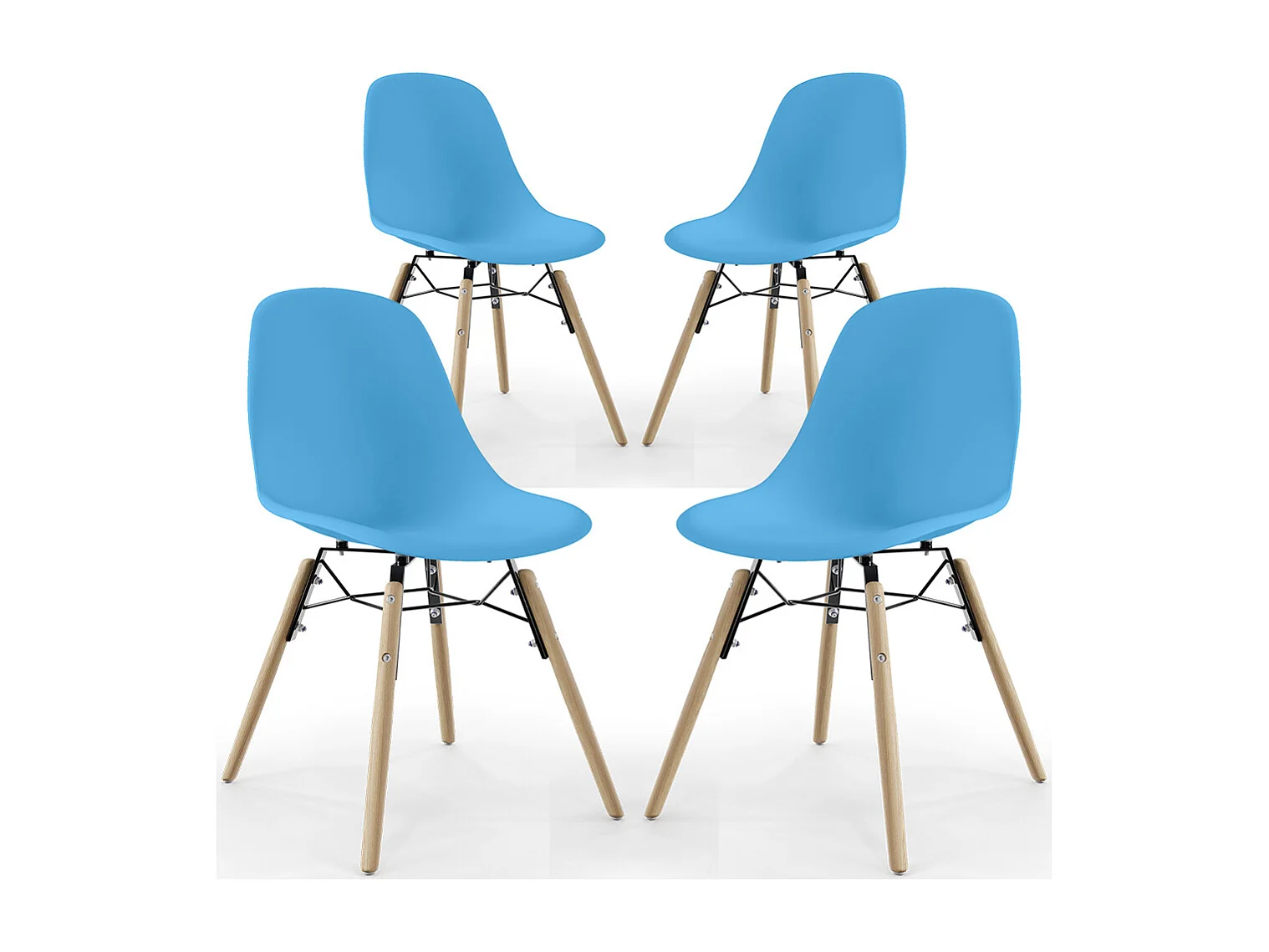 Chaise de Salle à Manger - Design Scandinave - Pieds en Bois - Lot de 4 - Skögur Bleu