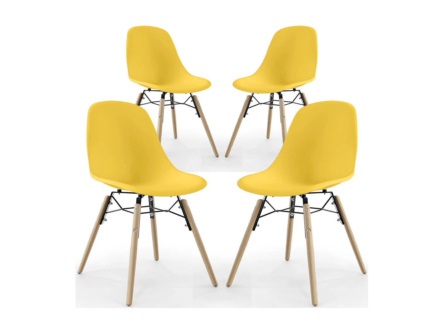 Chaise de Salle à Manger - Design Scandinave - Pieds en Bois - Lot de 4 - Skögur Jaune