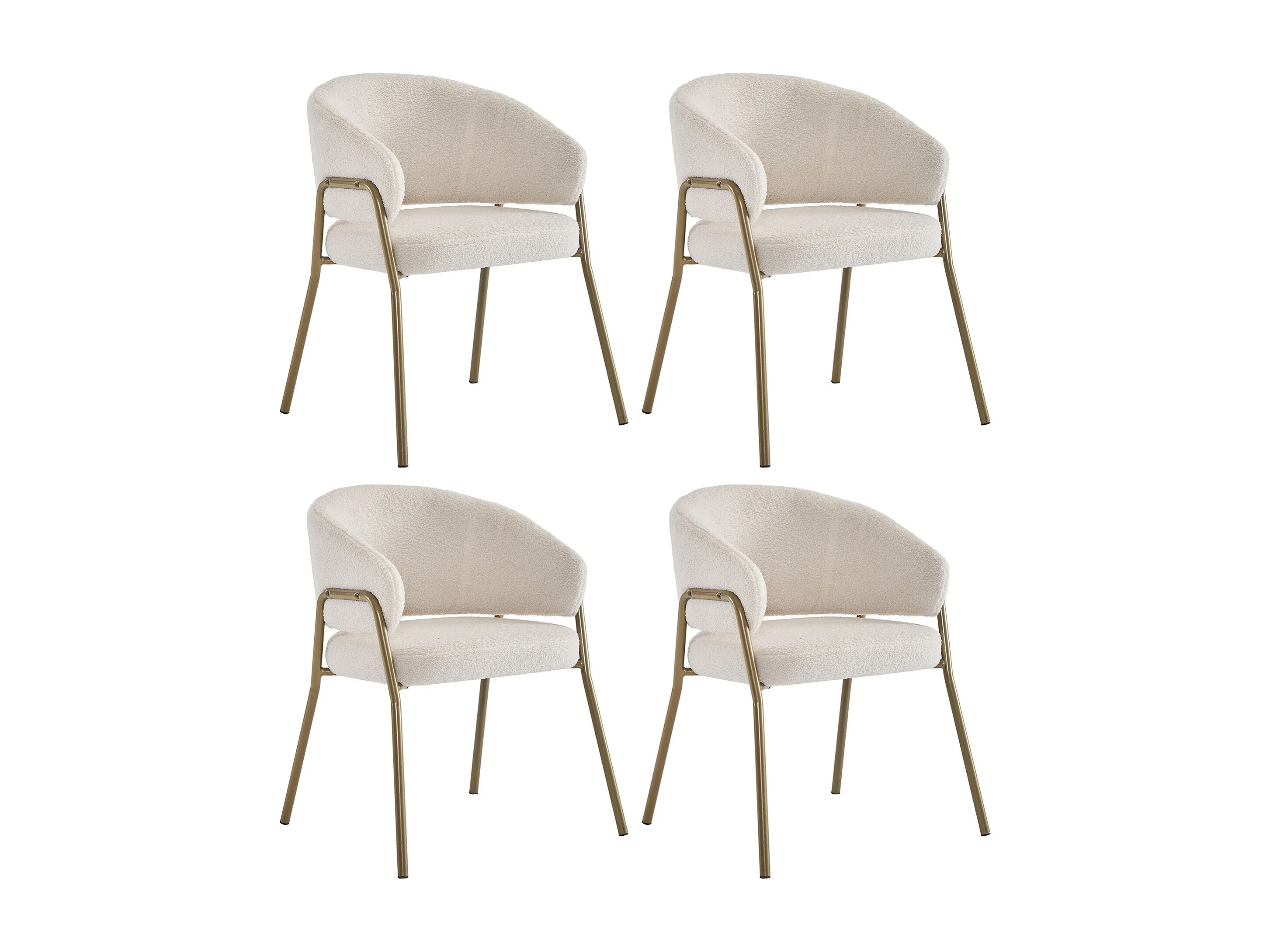 Chaise de salle à manger en polaire avec pieds en fer dorés – blanc