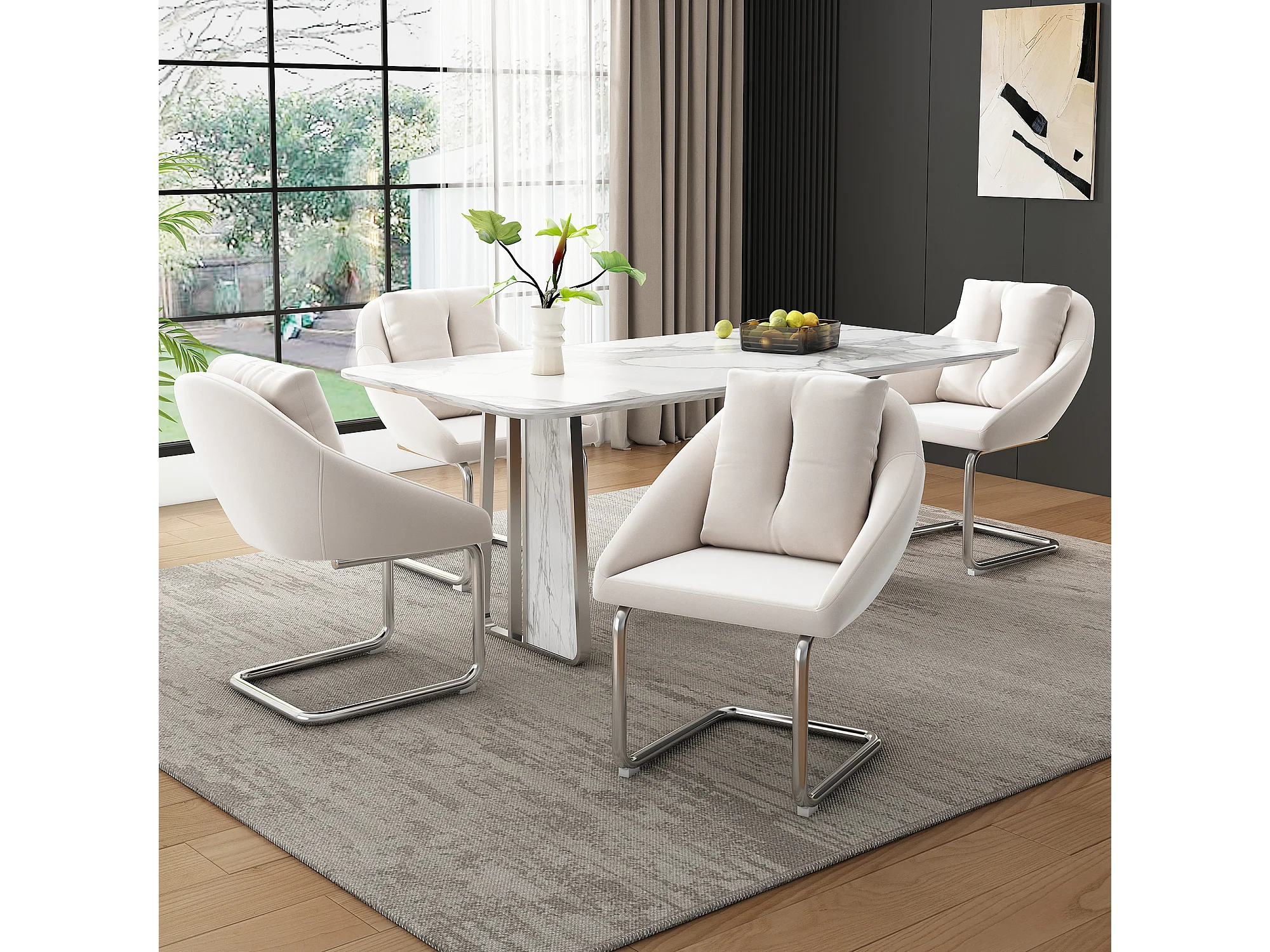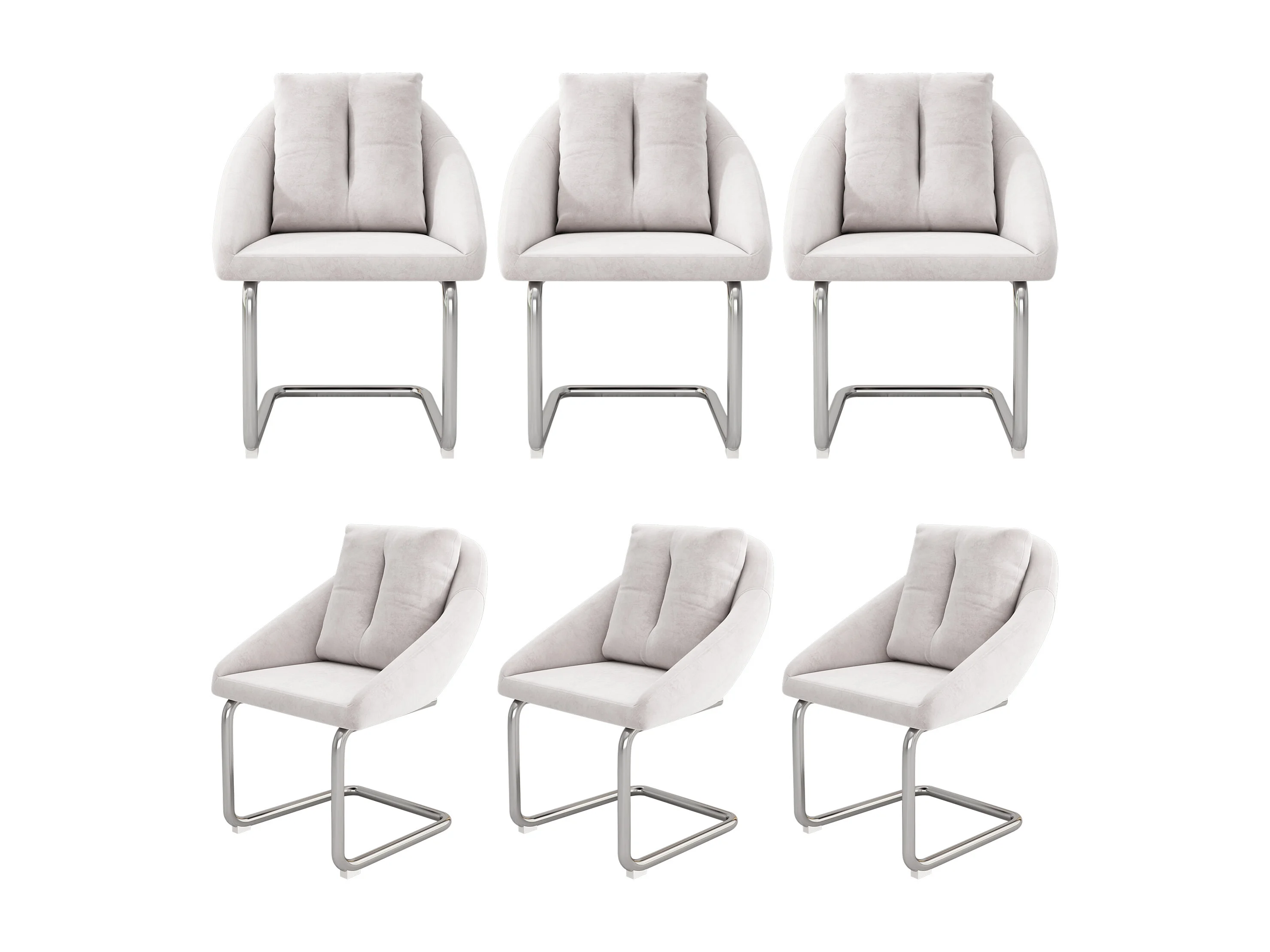 Chaise de salle à manger en velours, 6 pièces avec coussins, fauteuil pivotant de luxe pour salon et chambre, pieds incurvés, beige (72 x 60 x 50 cm)