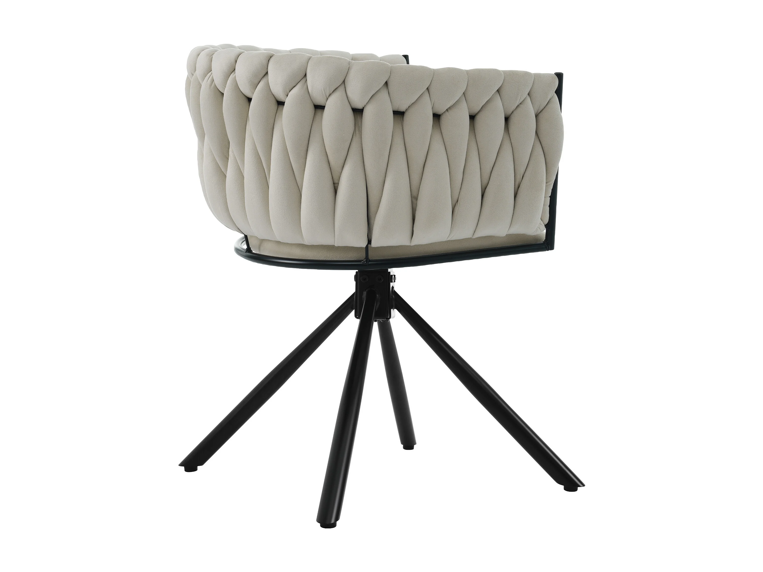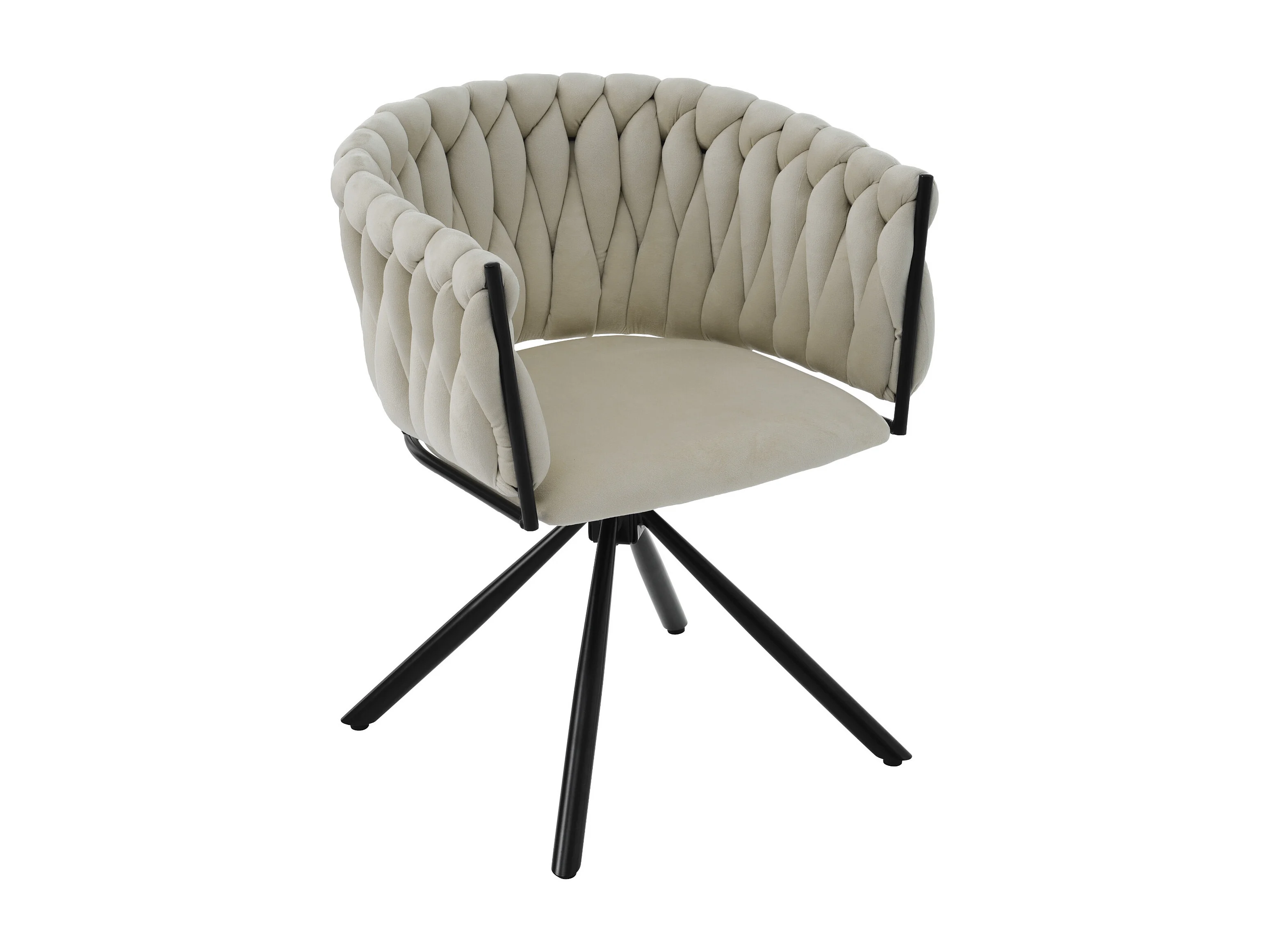 Chaise de salle à manger en velours, dossier ergonomique, rotation 360°, piétement métal 4 pieds – beige