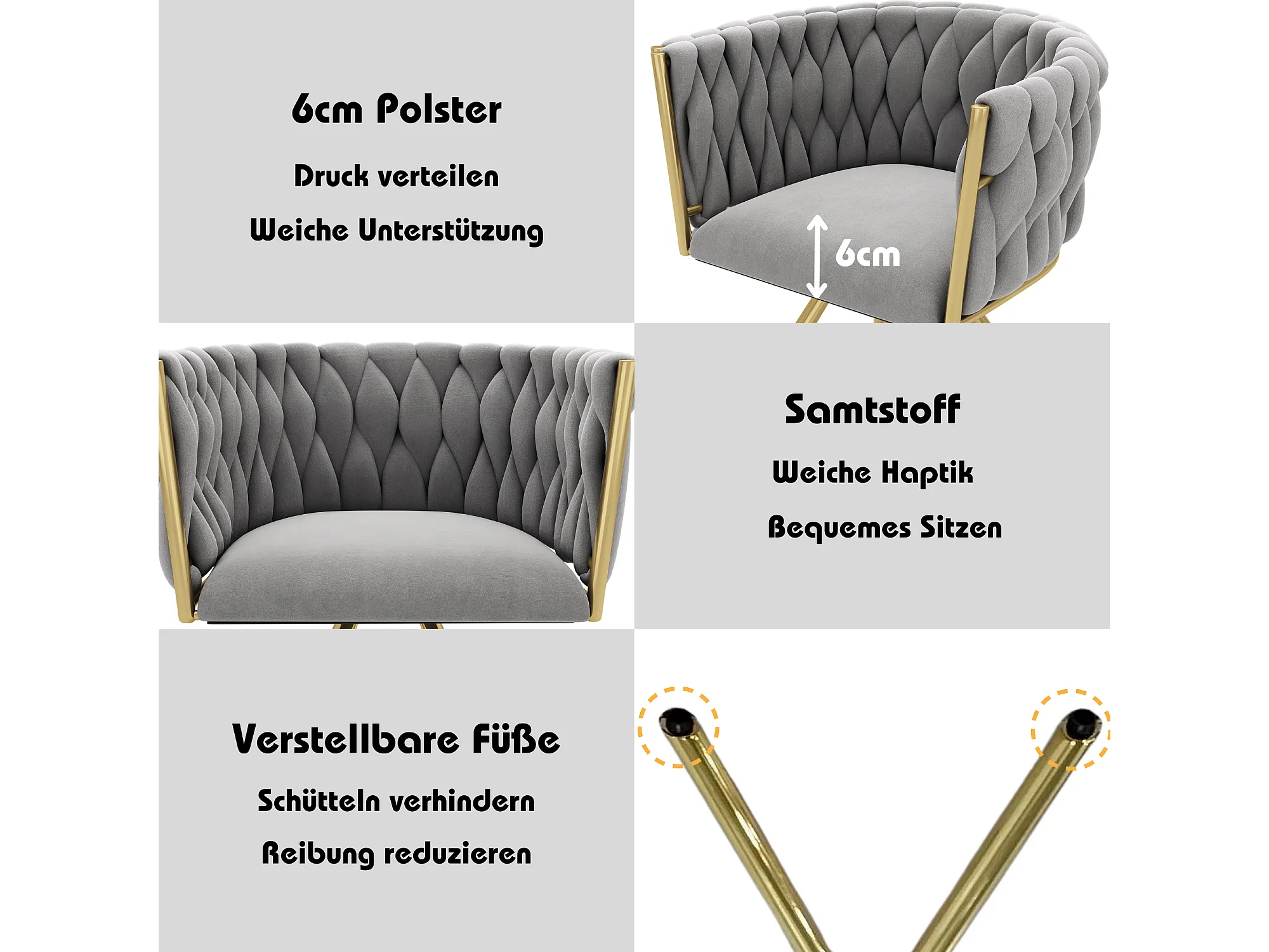 Chaise de salle à manger en velours pivotante design avec pieds métal doré pour salon ou chambre gris