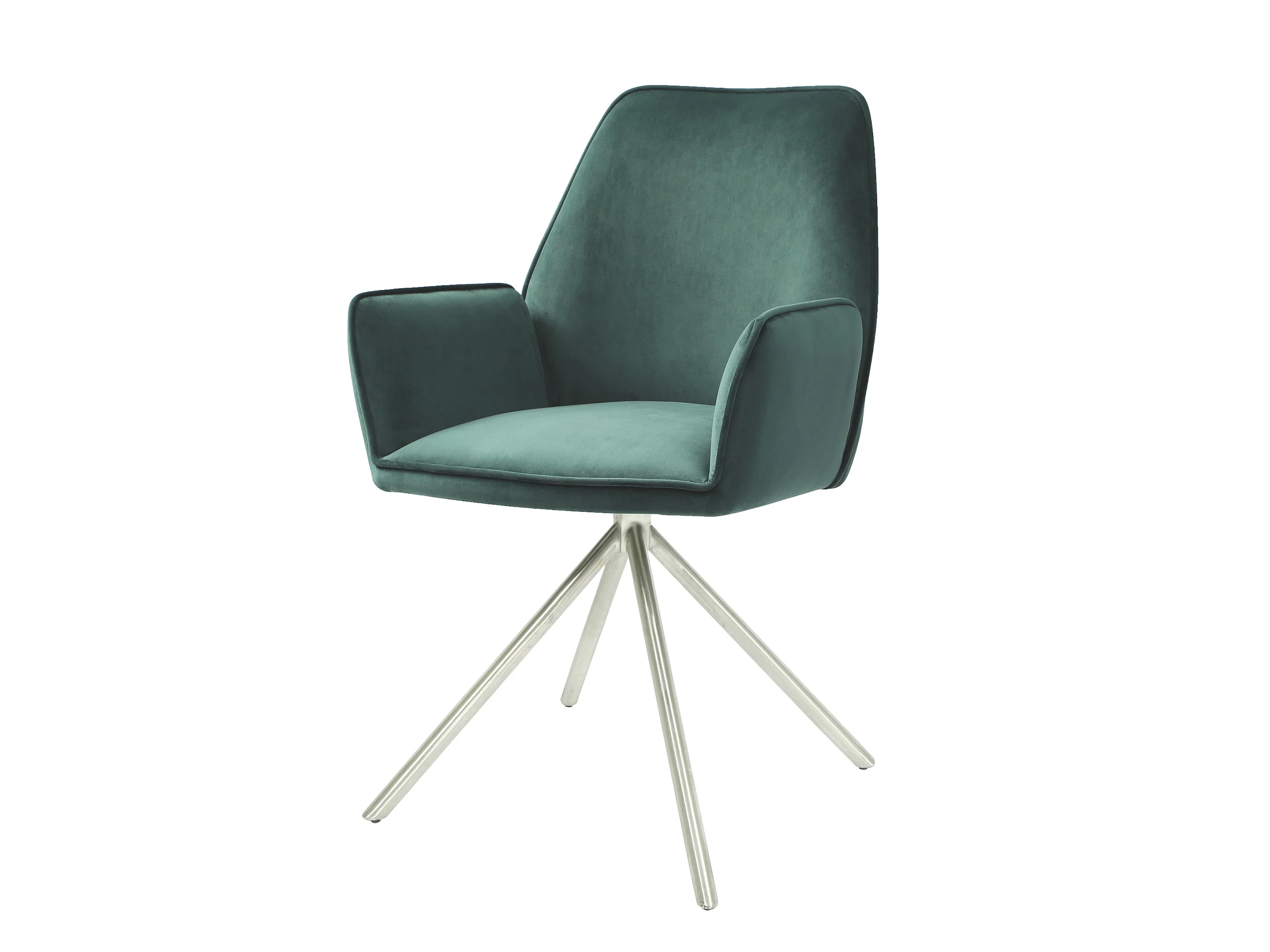 Chaise de salle à manger HWC-G67, chaise de cuisine avec accoudoirs, pivotante velours ~ vert, inox