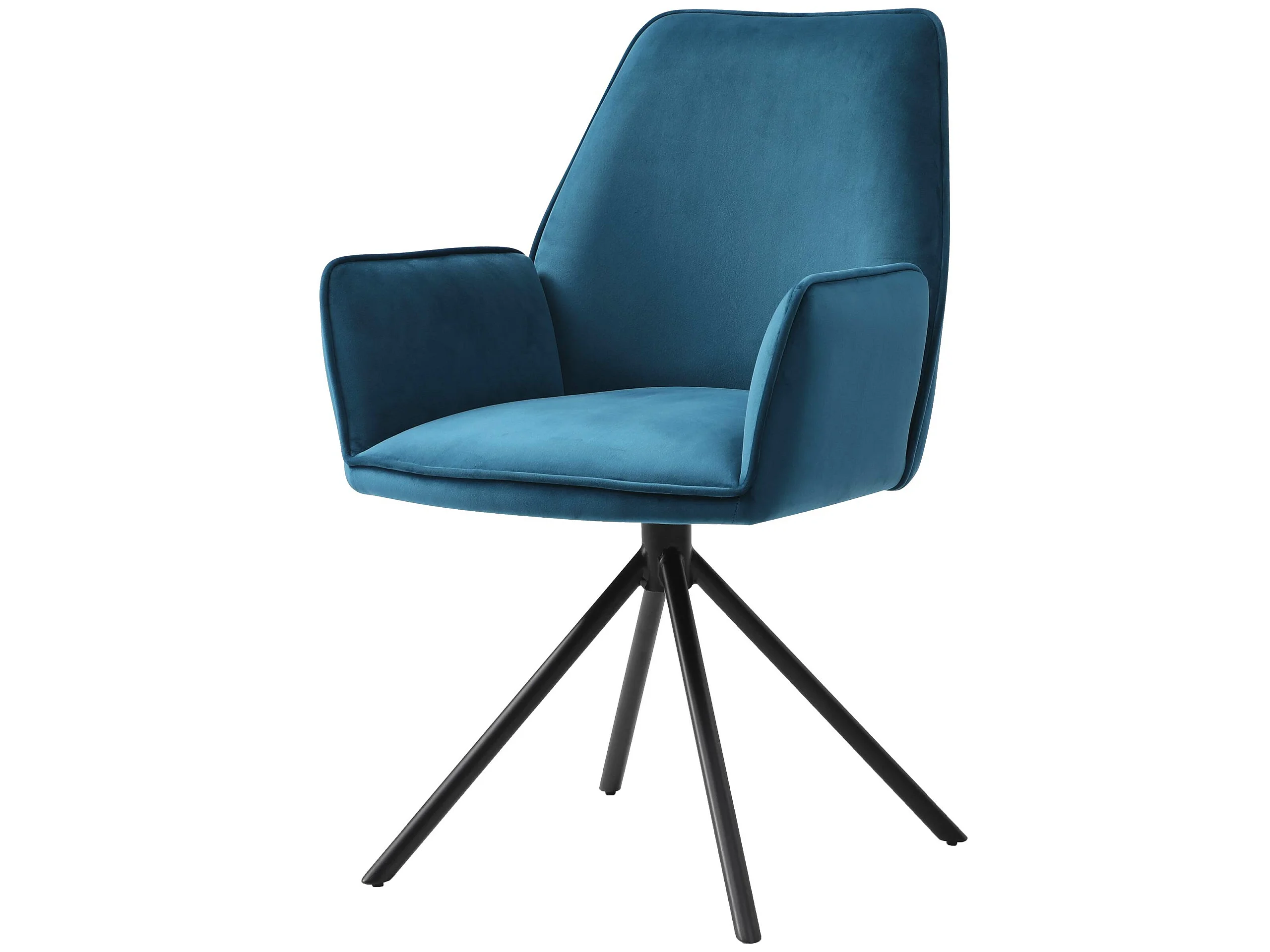 Chaise de salle à manger HWC-G67, chaise de cuisine, pivotante, auto-position - velours, bleu turquoise
