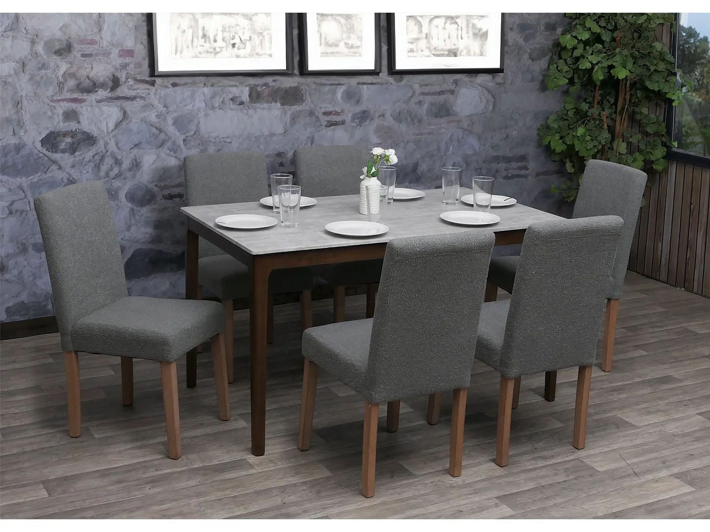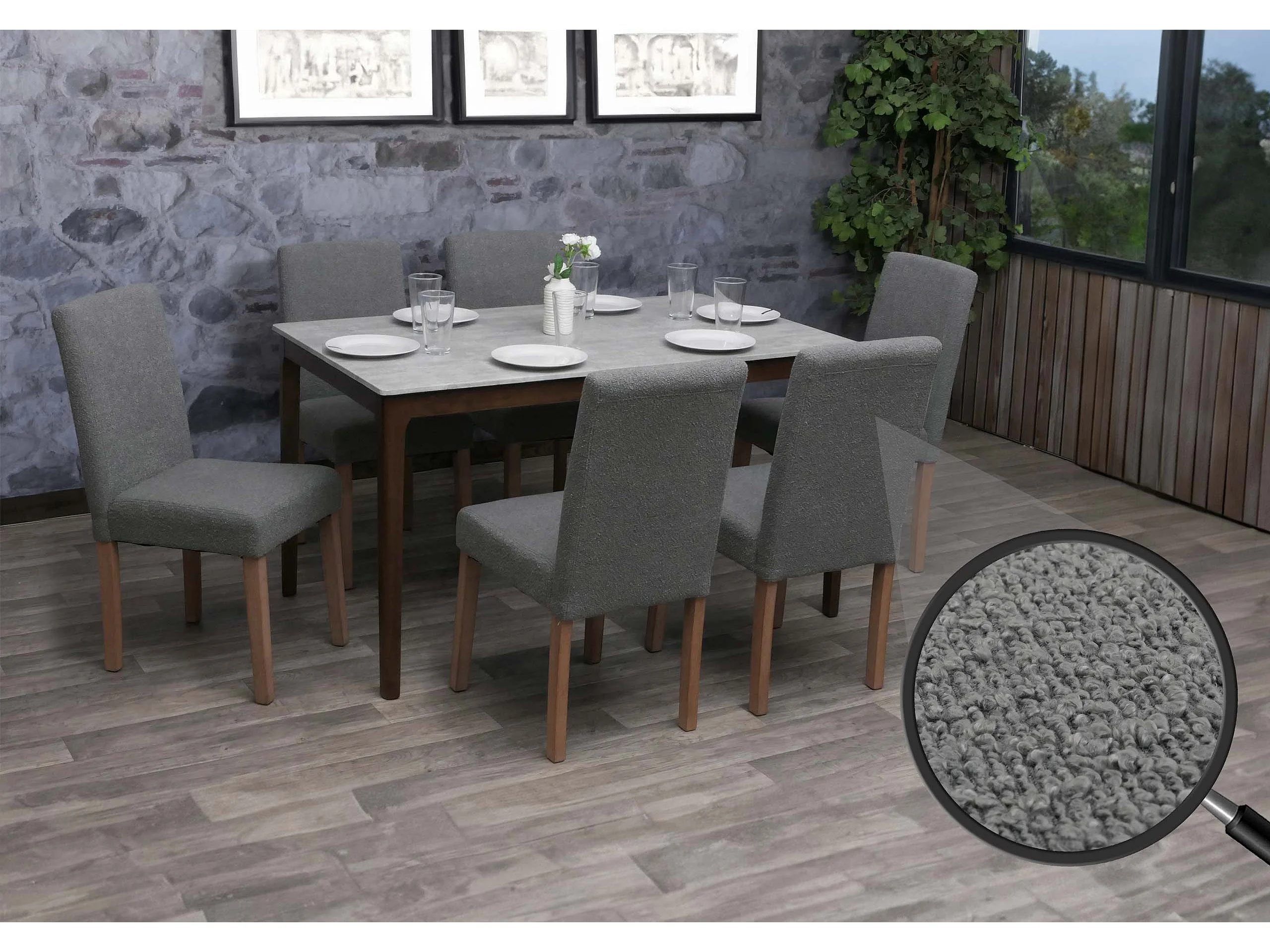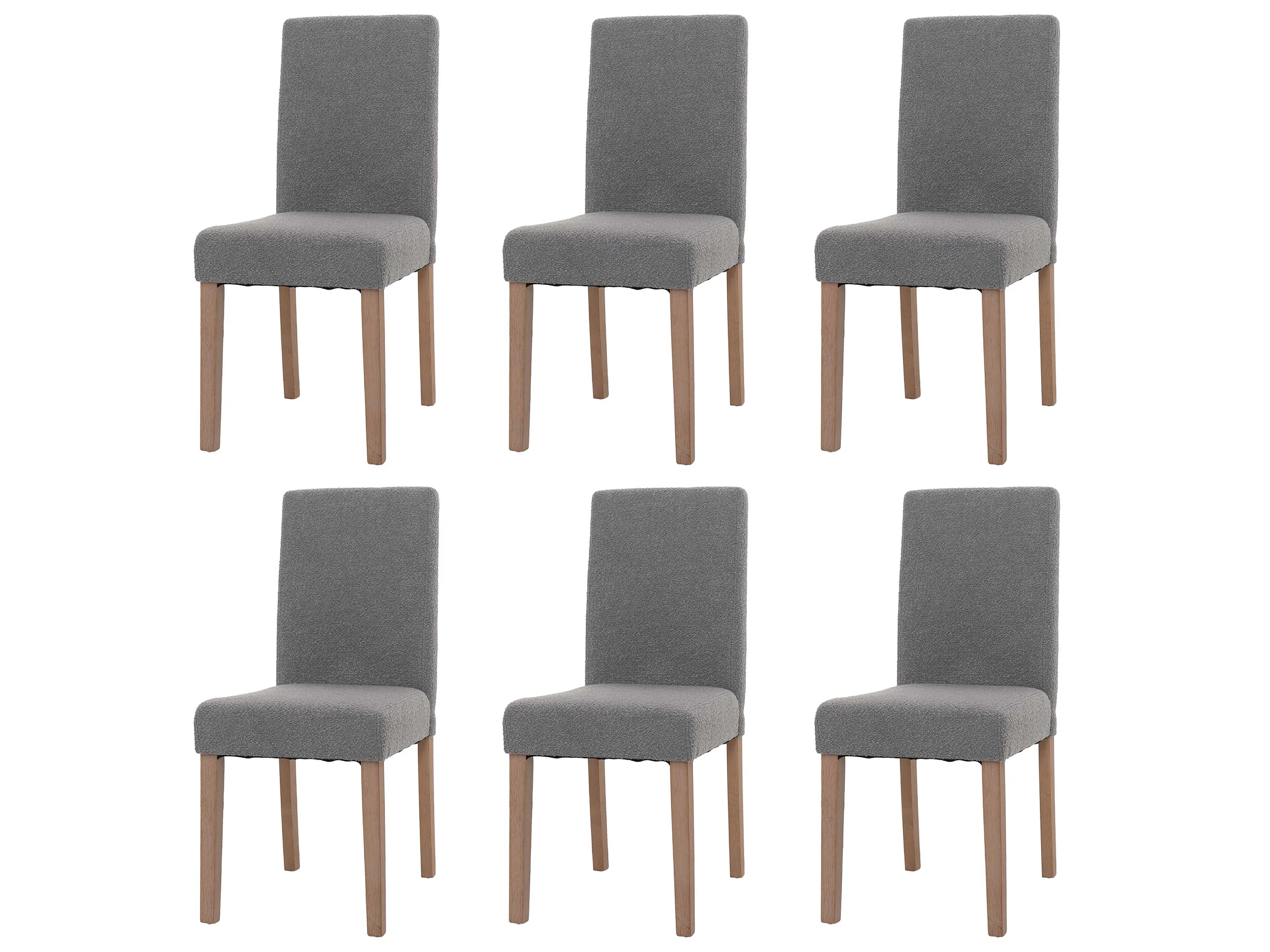 Chaise de salle à manger Littau Bouclé (lot de 6), gris, pieds couleur naturelle