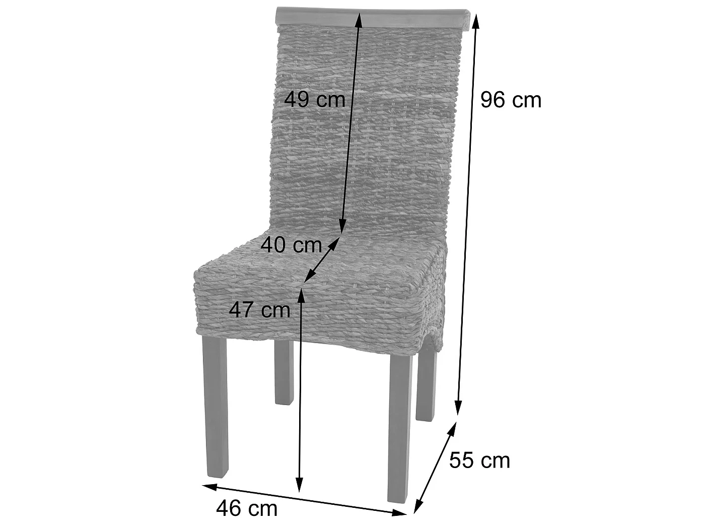 Chaise de salle à manger Manfredonia (lot de 6), Lot de 6 chaises M45, banane tressée, 47x54x93cn, pieds marrons