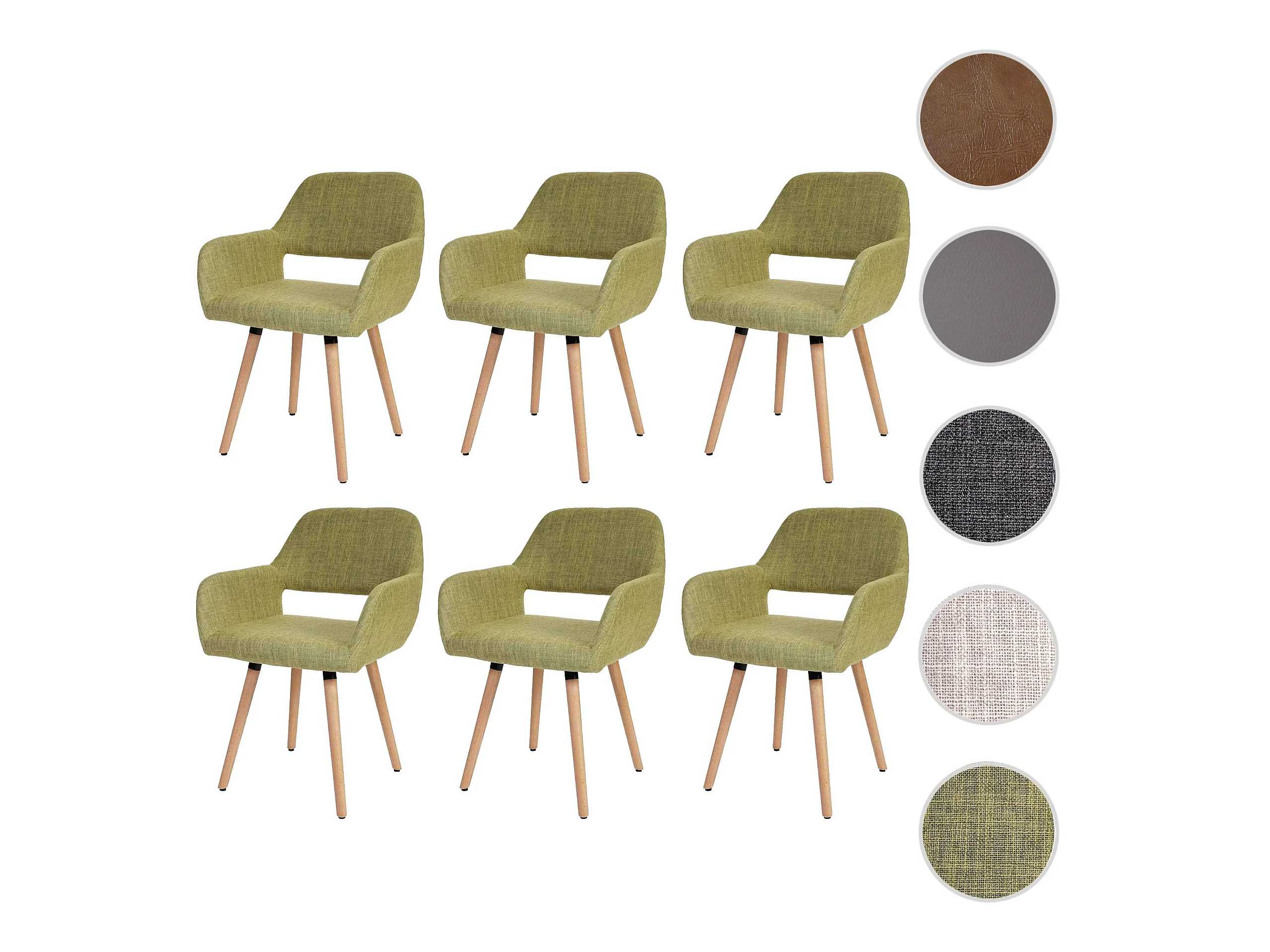 Chaise de salle à manger MCW-A50 II (lot de 6), tissu, vert clair