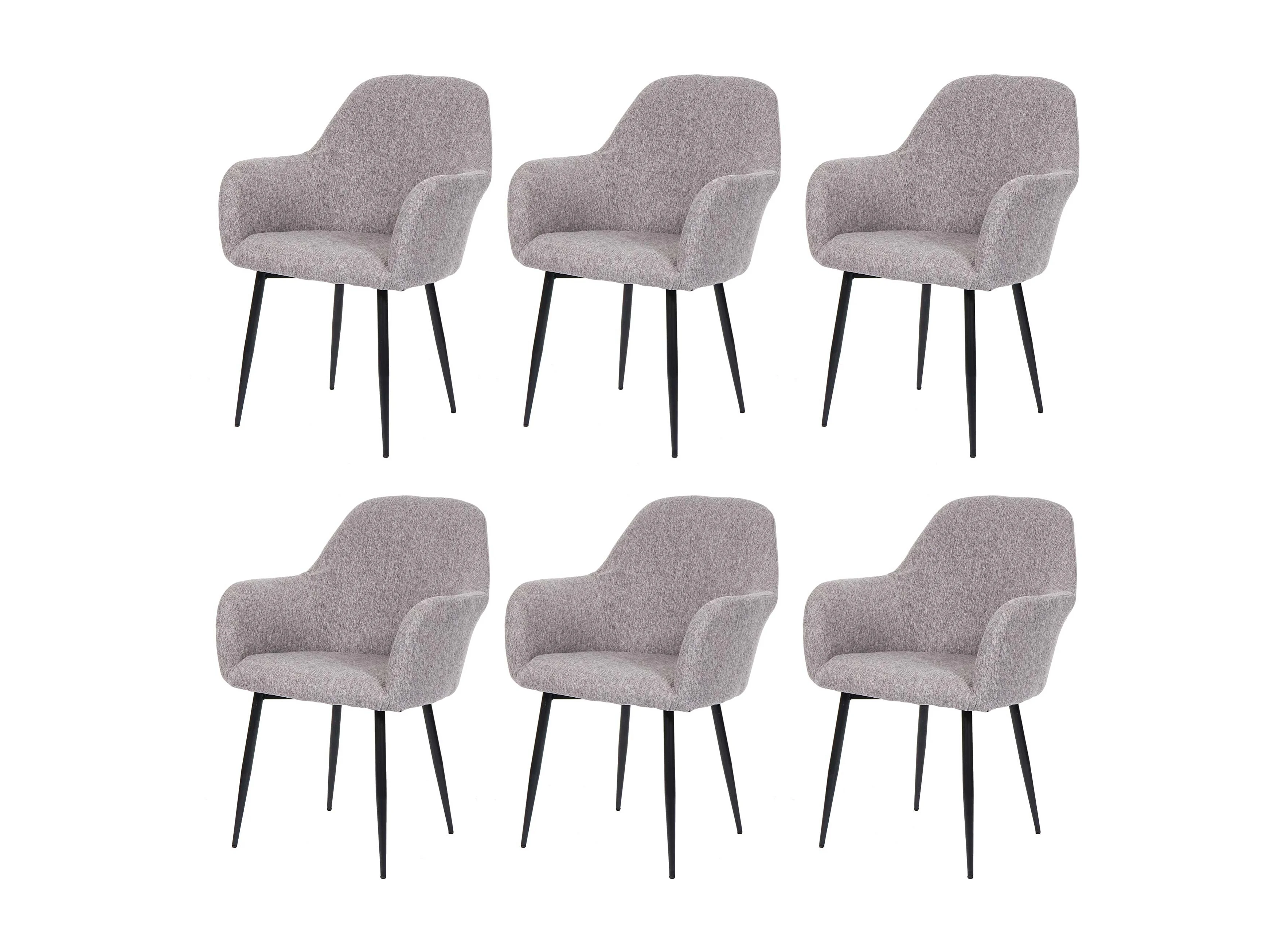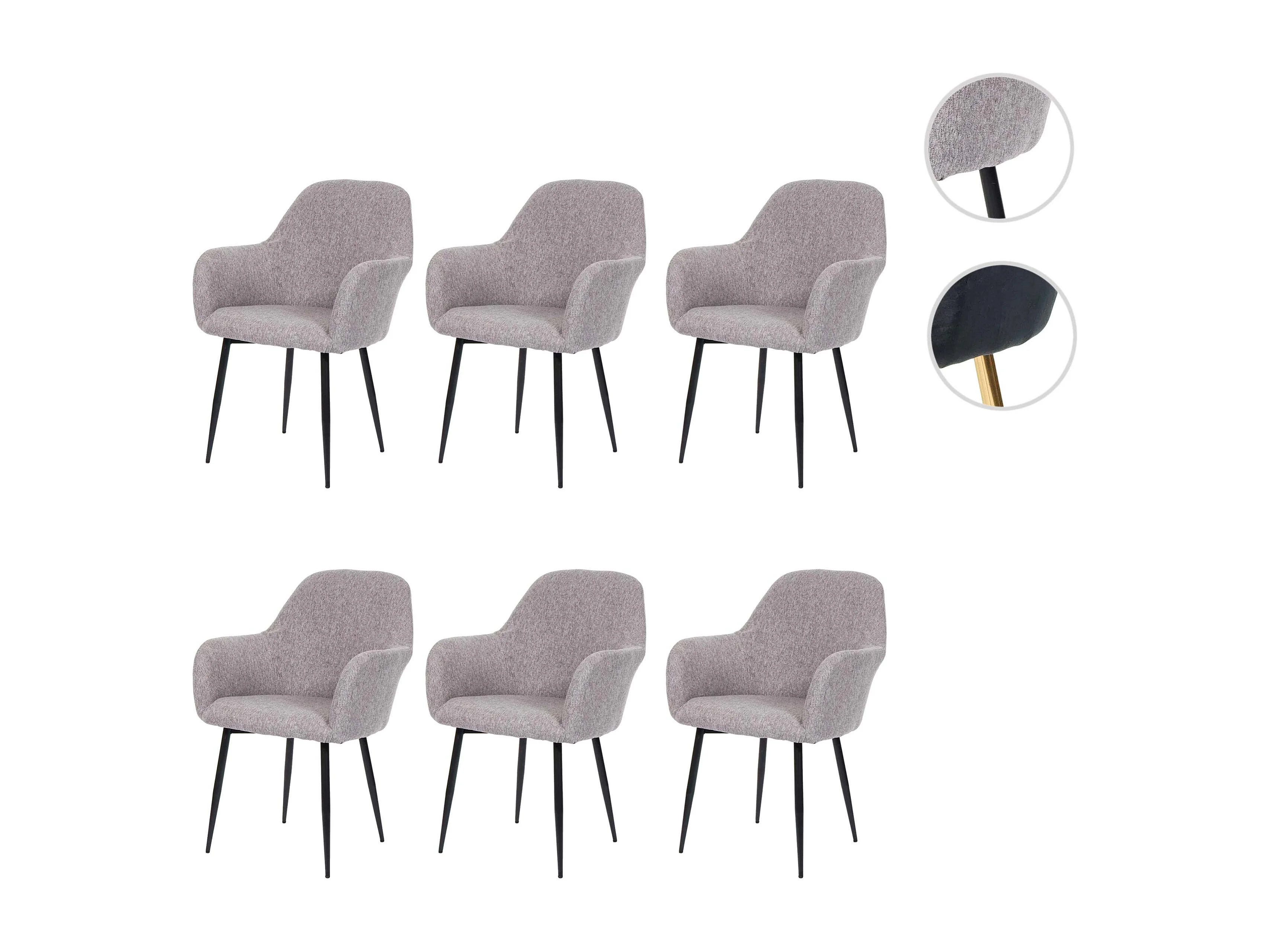 Chaise de salle à manger MCW-F18 (lot de 6), tissu/textile gris, pieds noirs