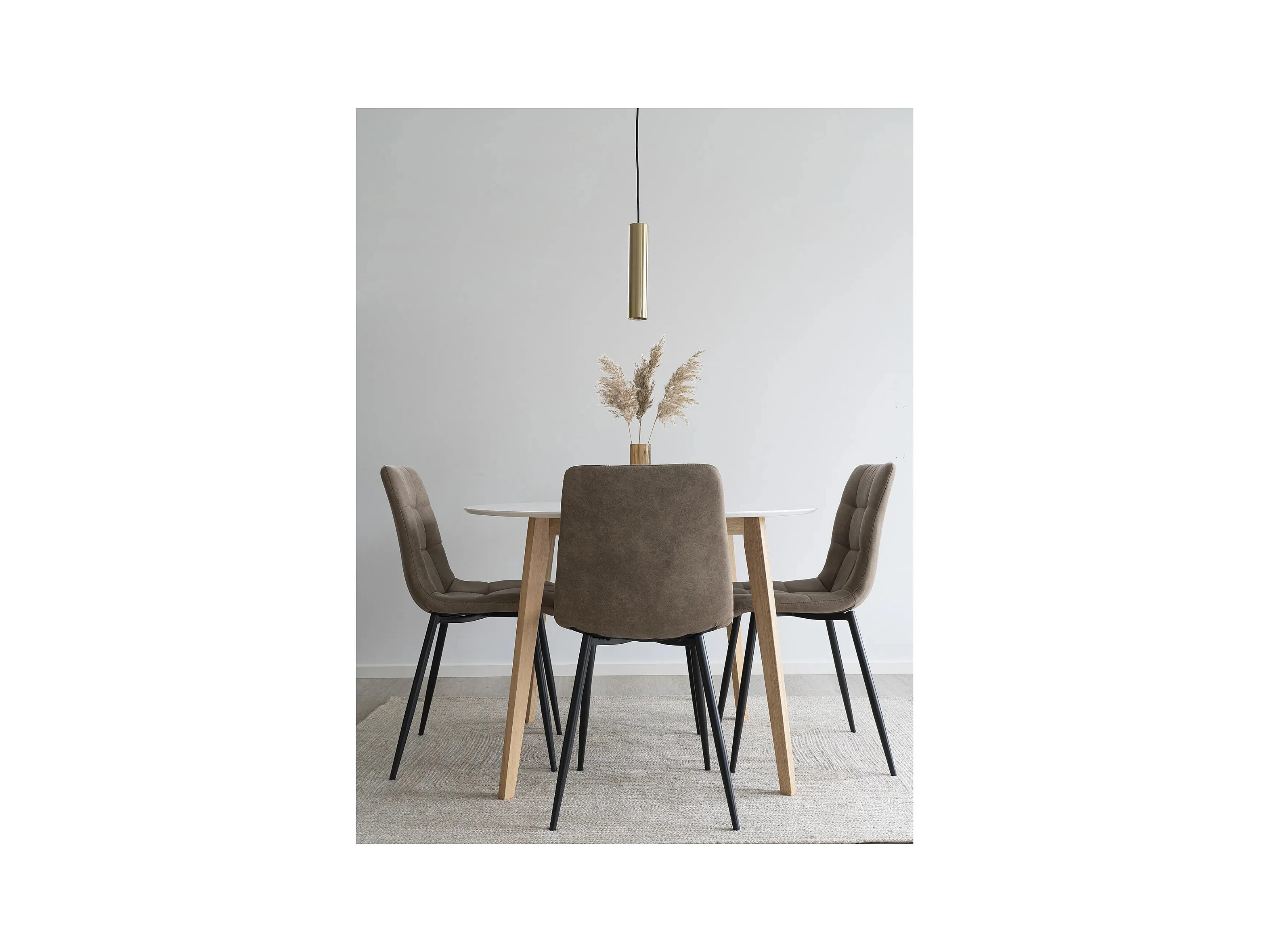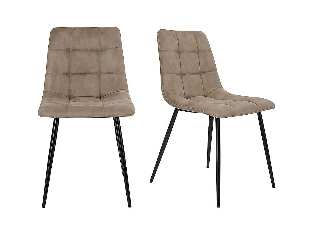 Lot de 2 chaises de salle à manger MODA – Tissu capitonné et pieds en acier noir-Beige