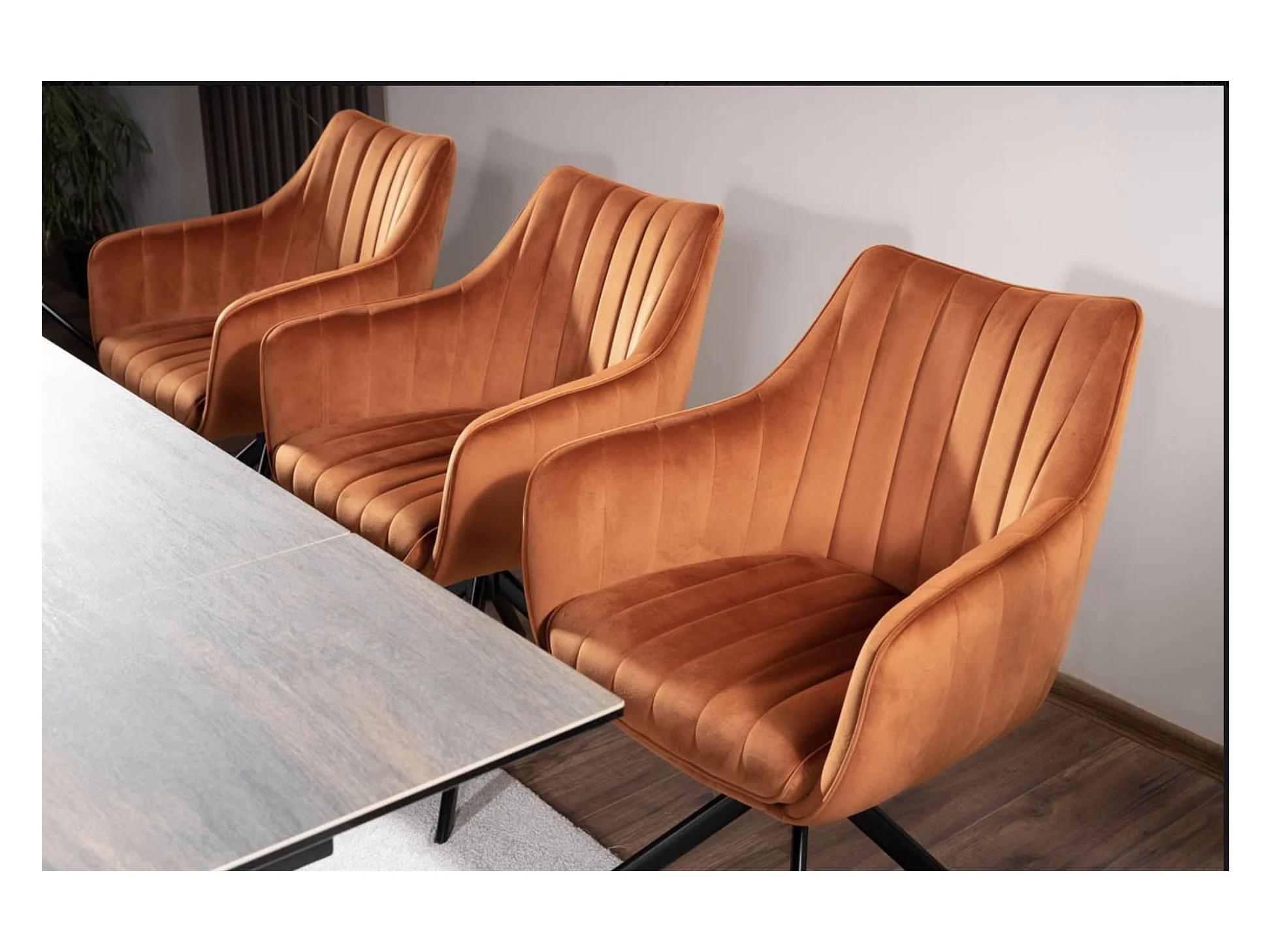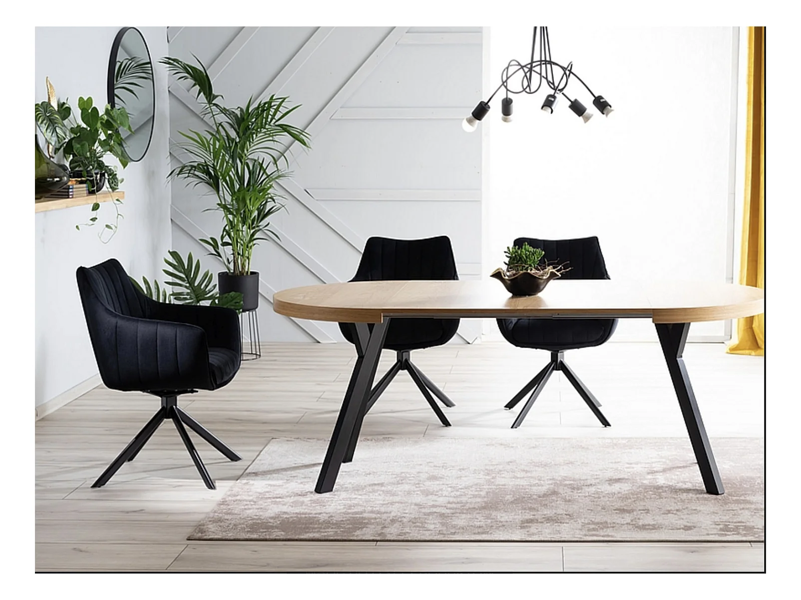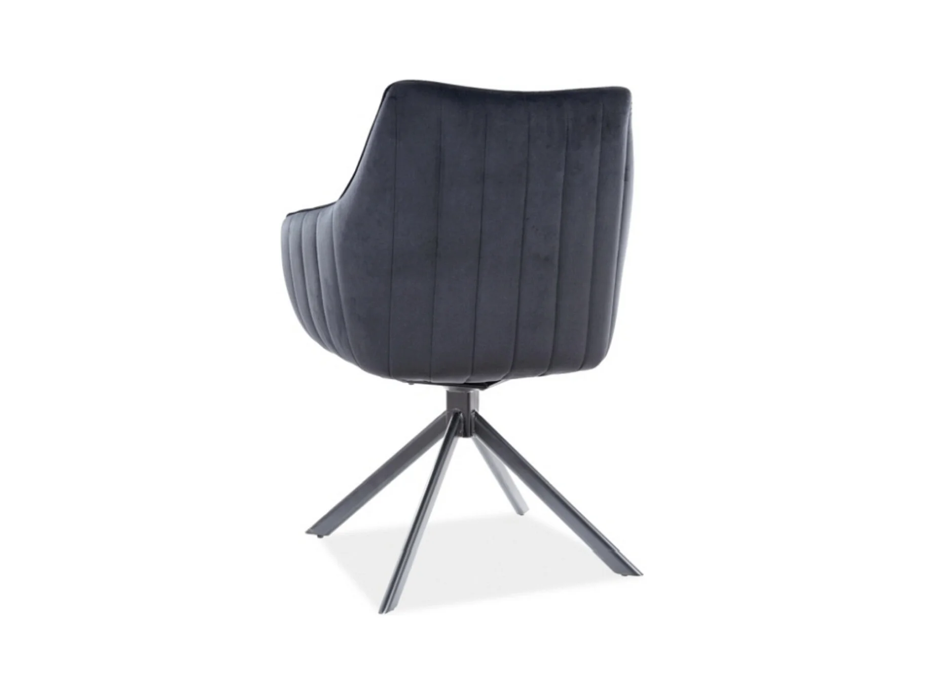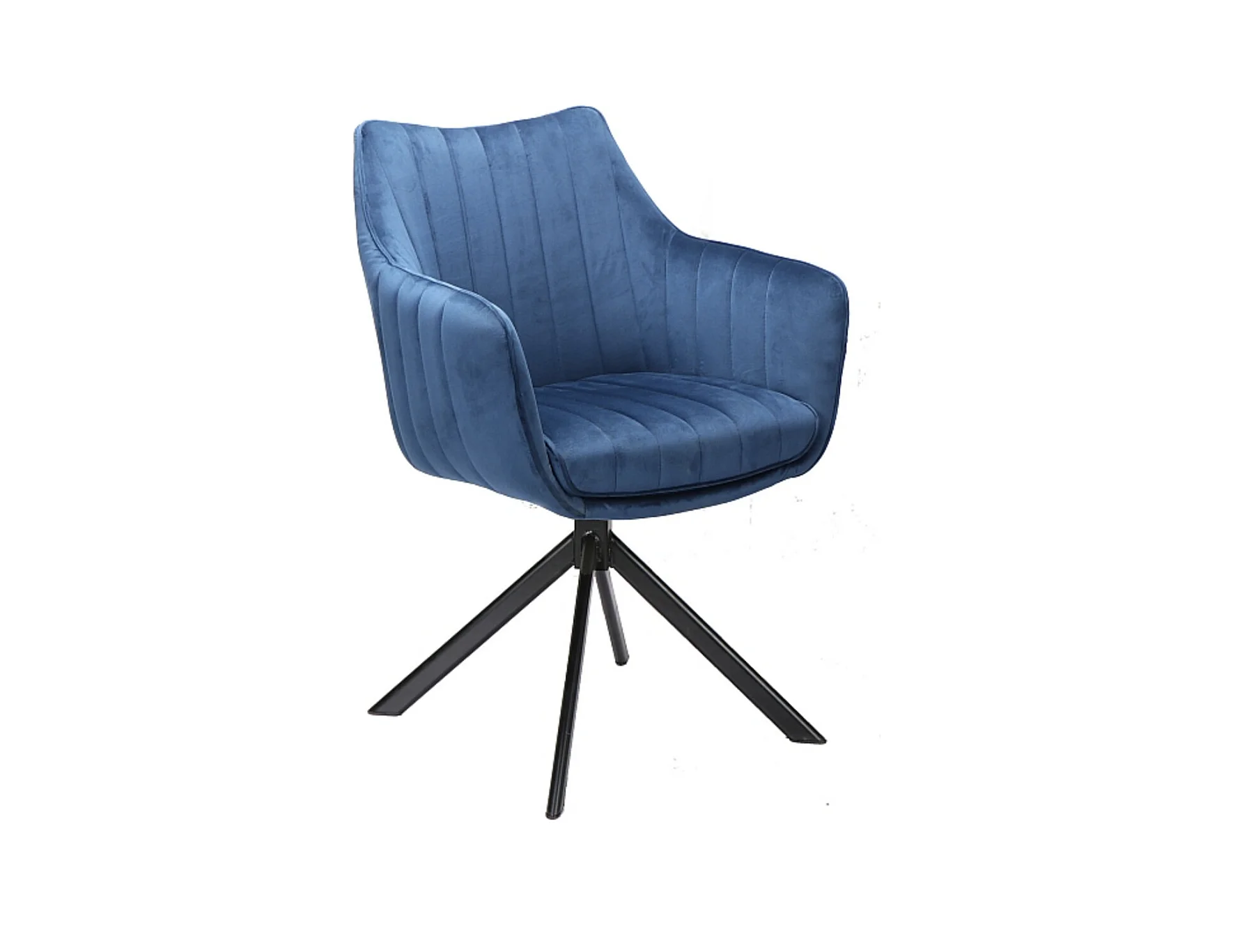 Chaise de salle à manger pivotante à 180° velours et acier noir Binka-Couleur Bleu denim