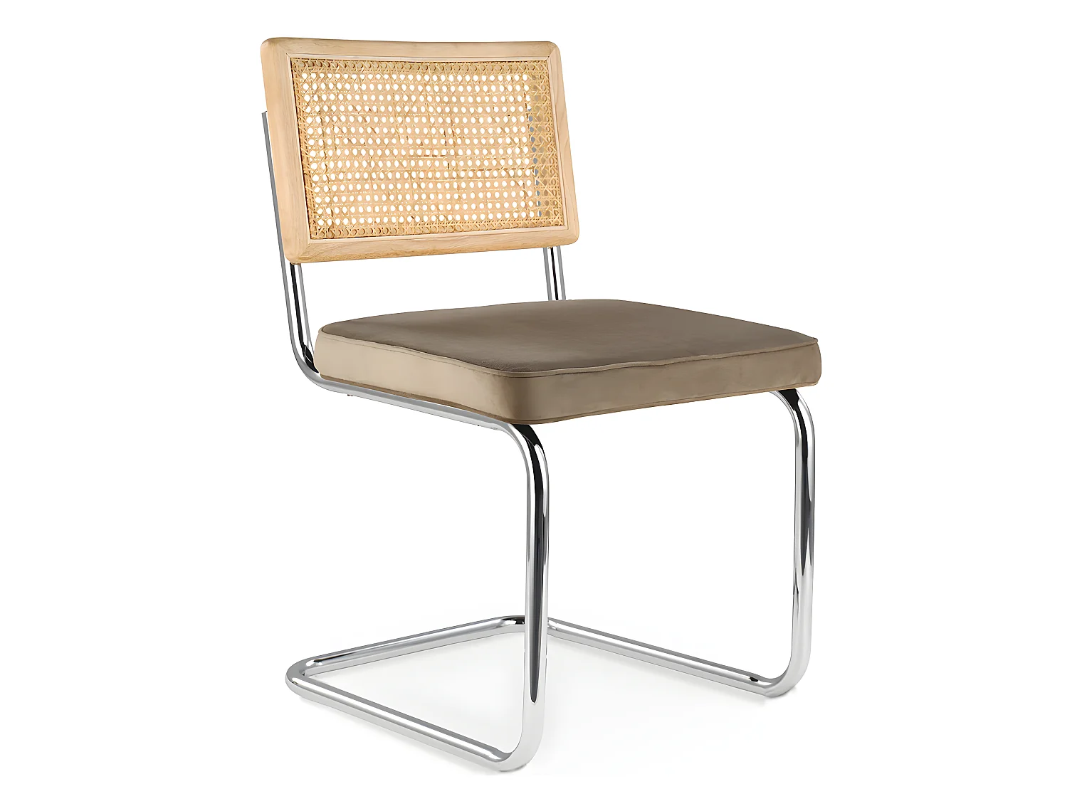 Chaise de salle à manger - tapissée de velours - Bois et rotin - Martha Beige