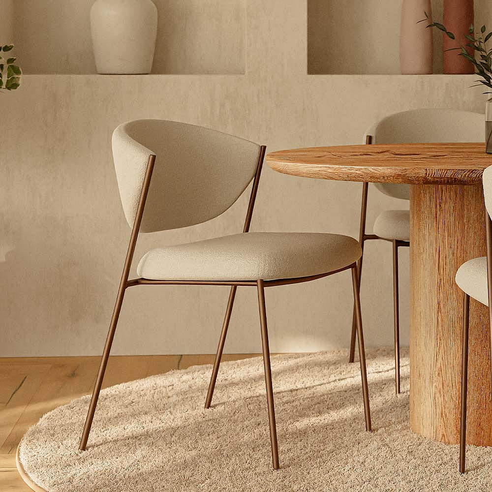 Chaise en tissu suédine capitonné marron et brun pieds métal - CERAMIK