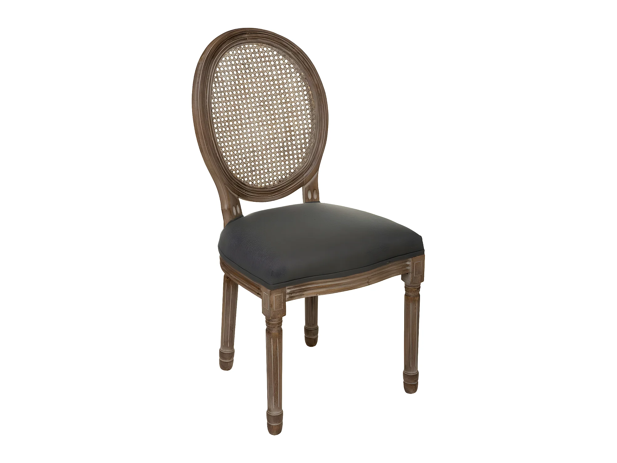 Chaise de table en coton Gris et Bois blanchi avec dossier Cannage