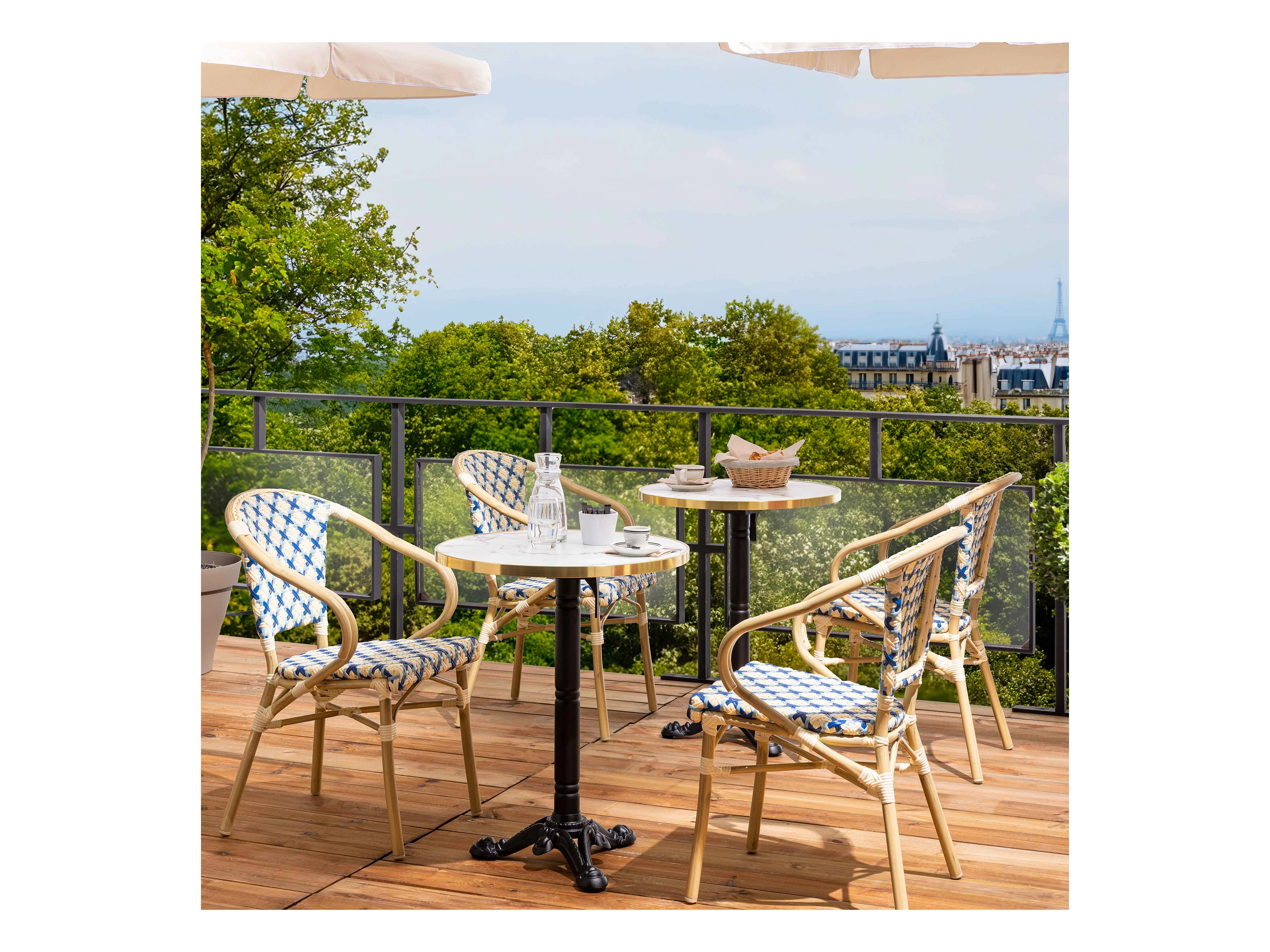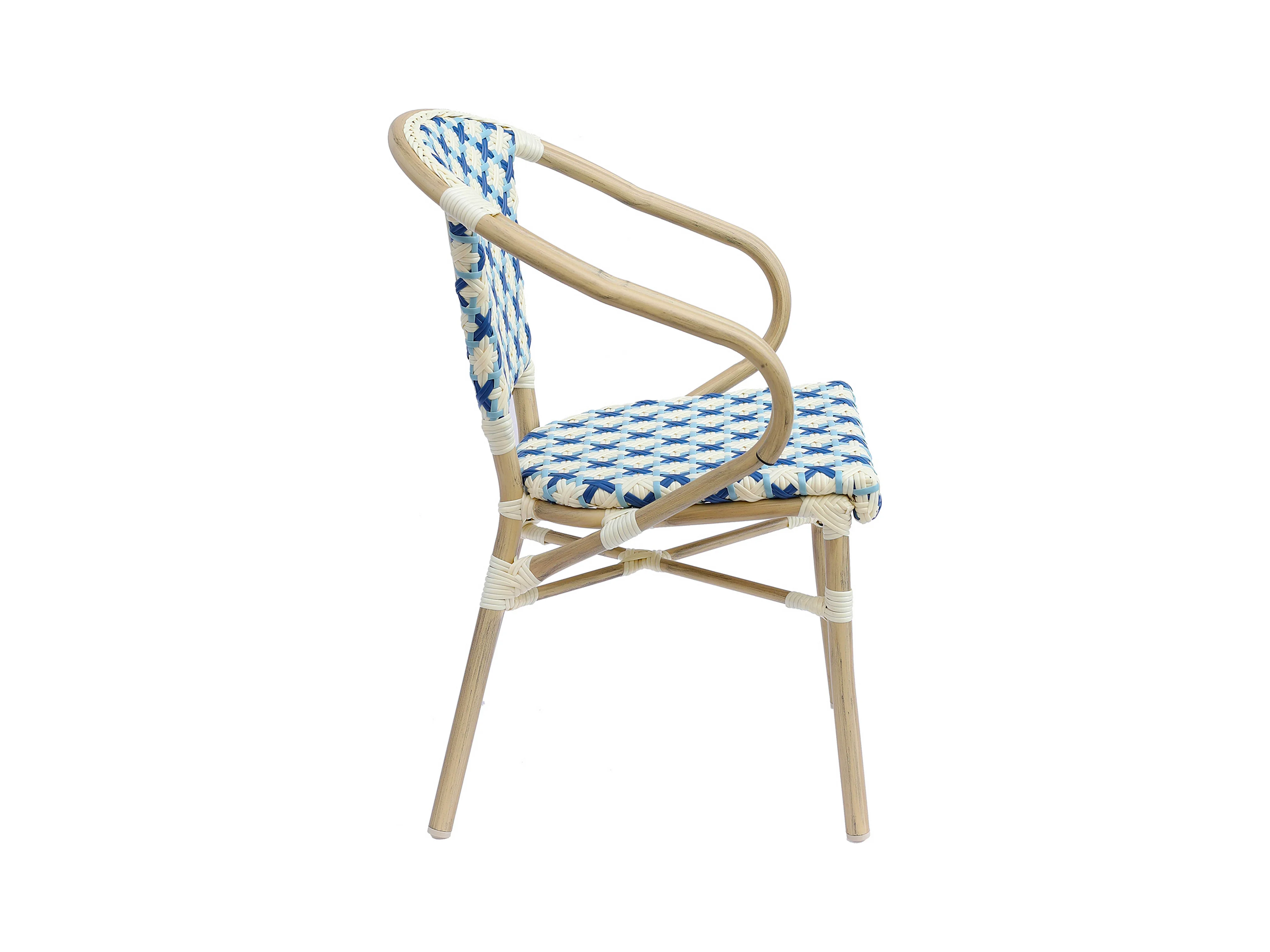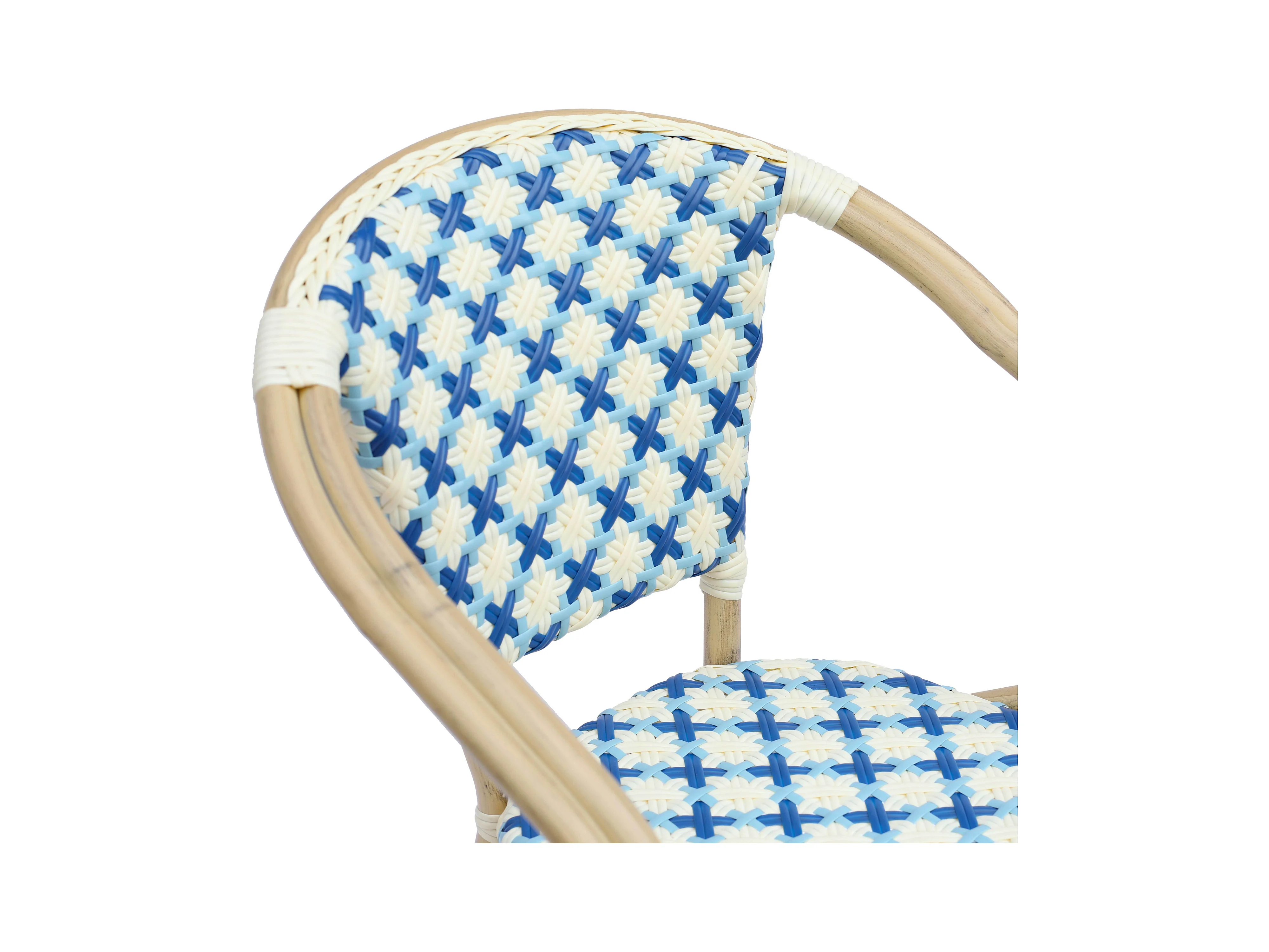 Fauteuil de terrasse bistrot parisien en aluminium et rotin bleu
