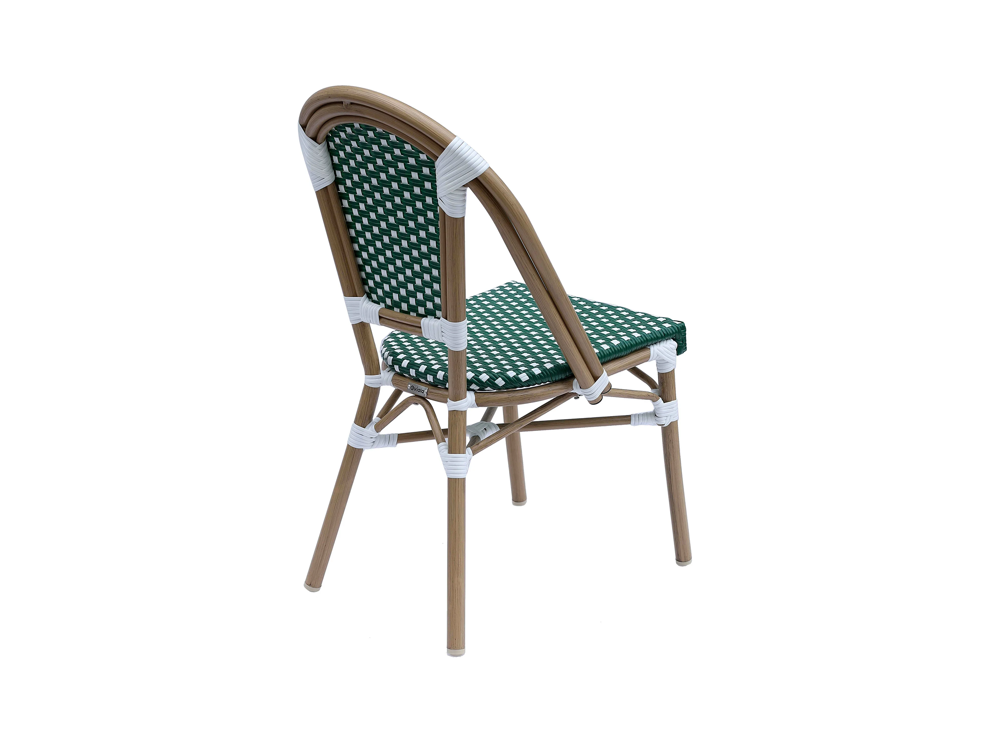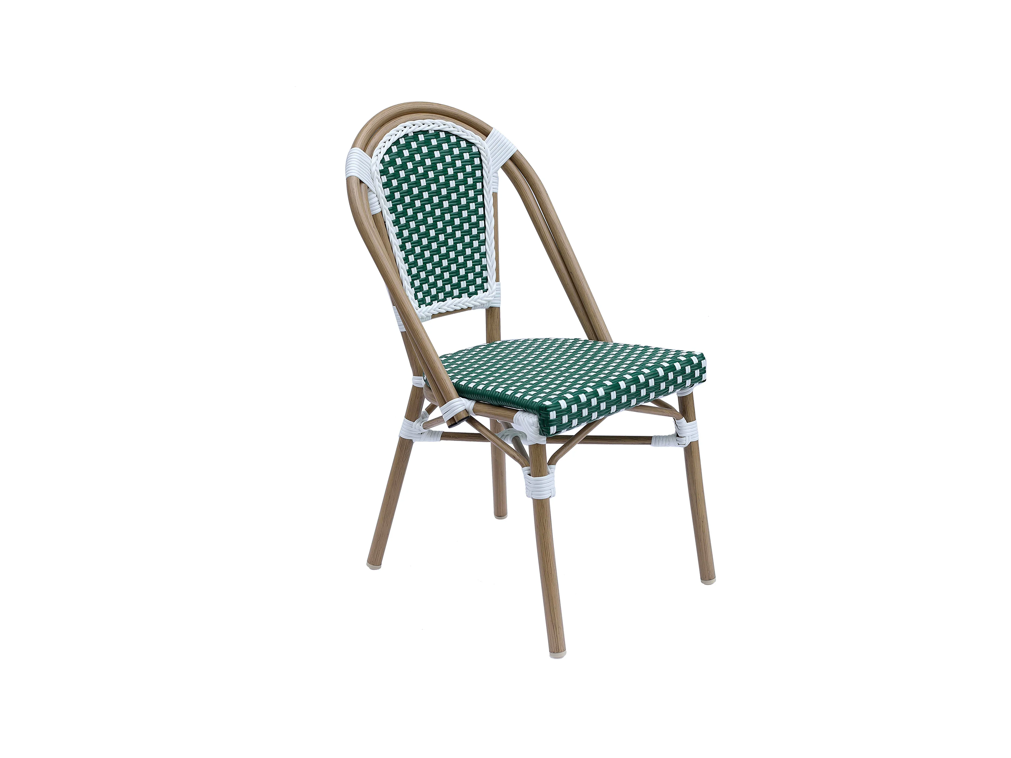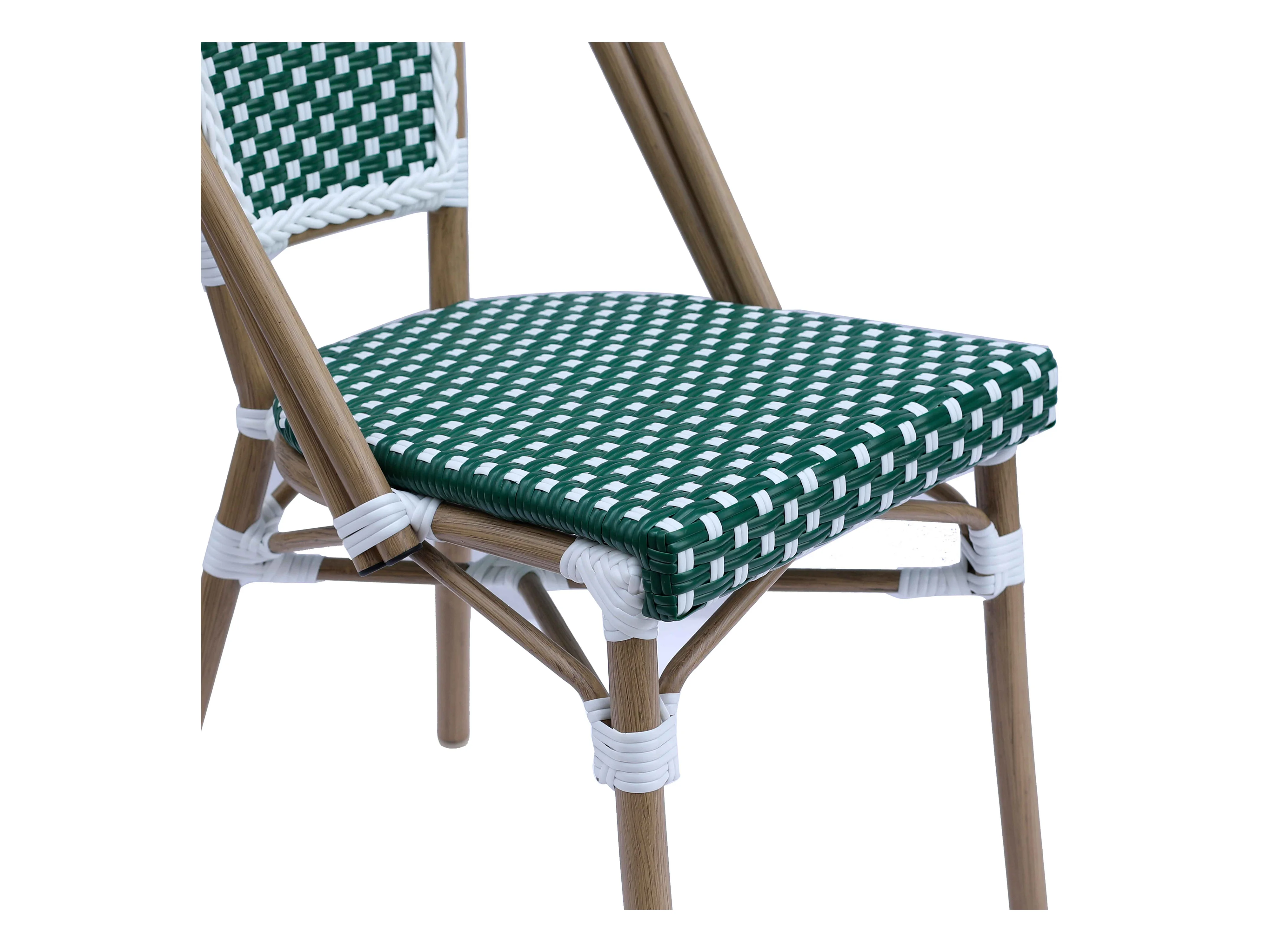 Chaise de terrasse bistrot parisien en aluminium et rotin vert foncé