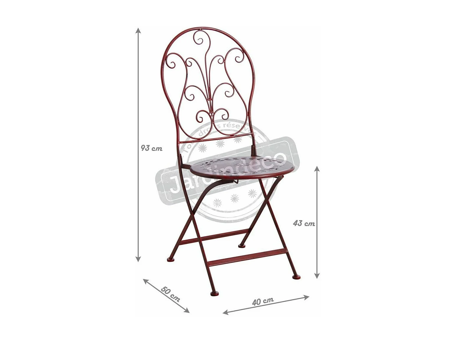 BISCOTTINI Chaise de Jardin - Fer Forgé Finition Rouge Antique - Chaise d'Extérieur - Mobilier de Jardin - Terrasse - Balcon - Chaise en Métal - 50x45x91 cm