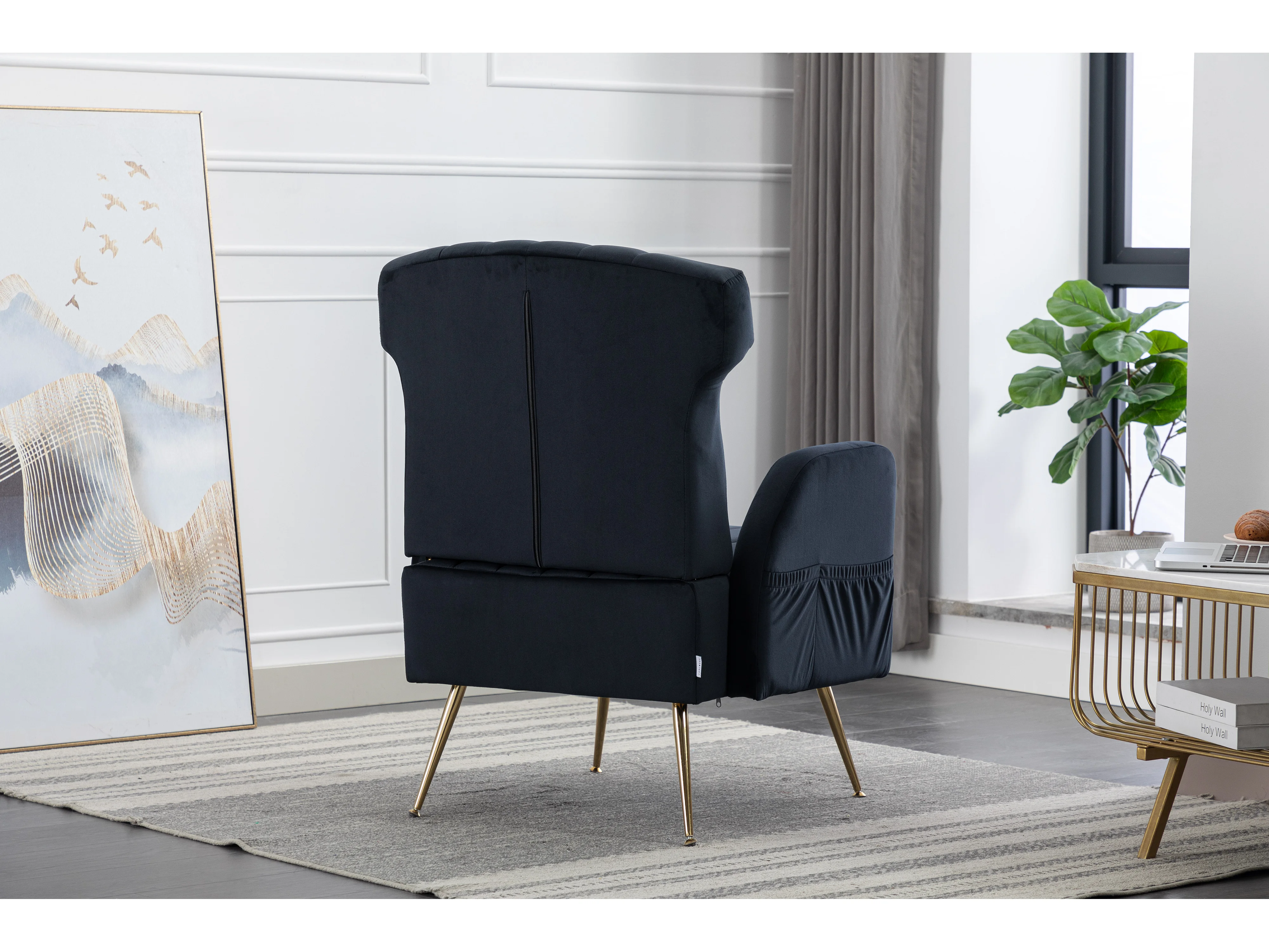 Chaise Décorative en Velours avec Accoudoirs, Design Classique et Moderne, Pieds Métalliques Dorés, Fauteuil Confortable pour Salon, Chambre ou Bureau