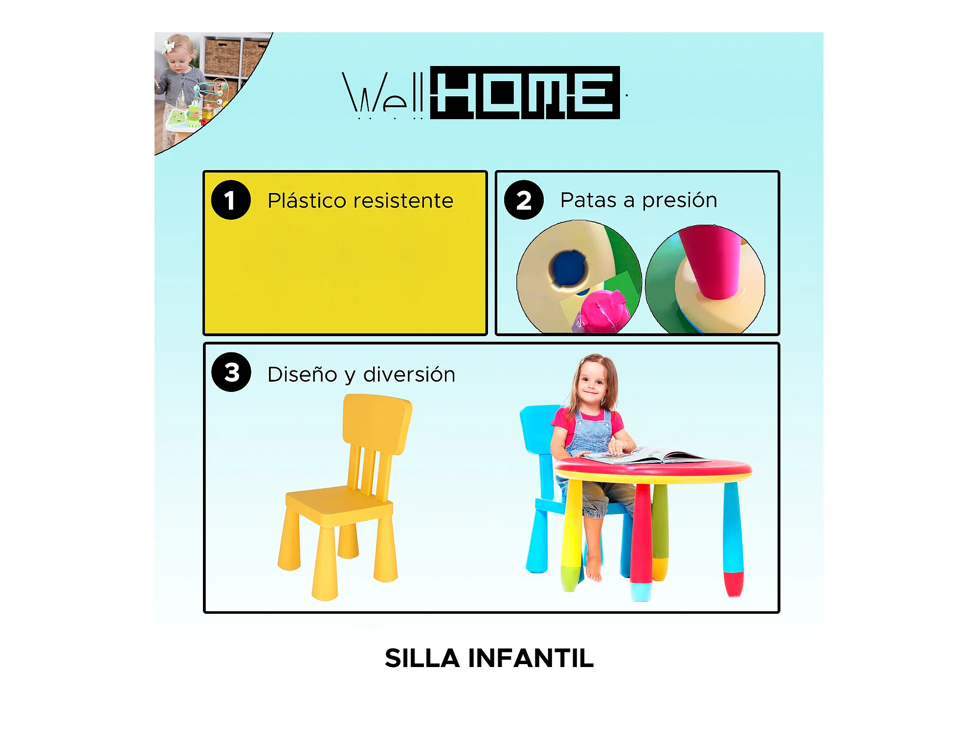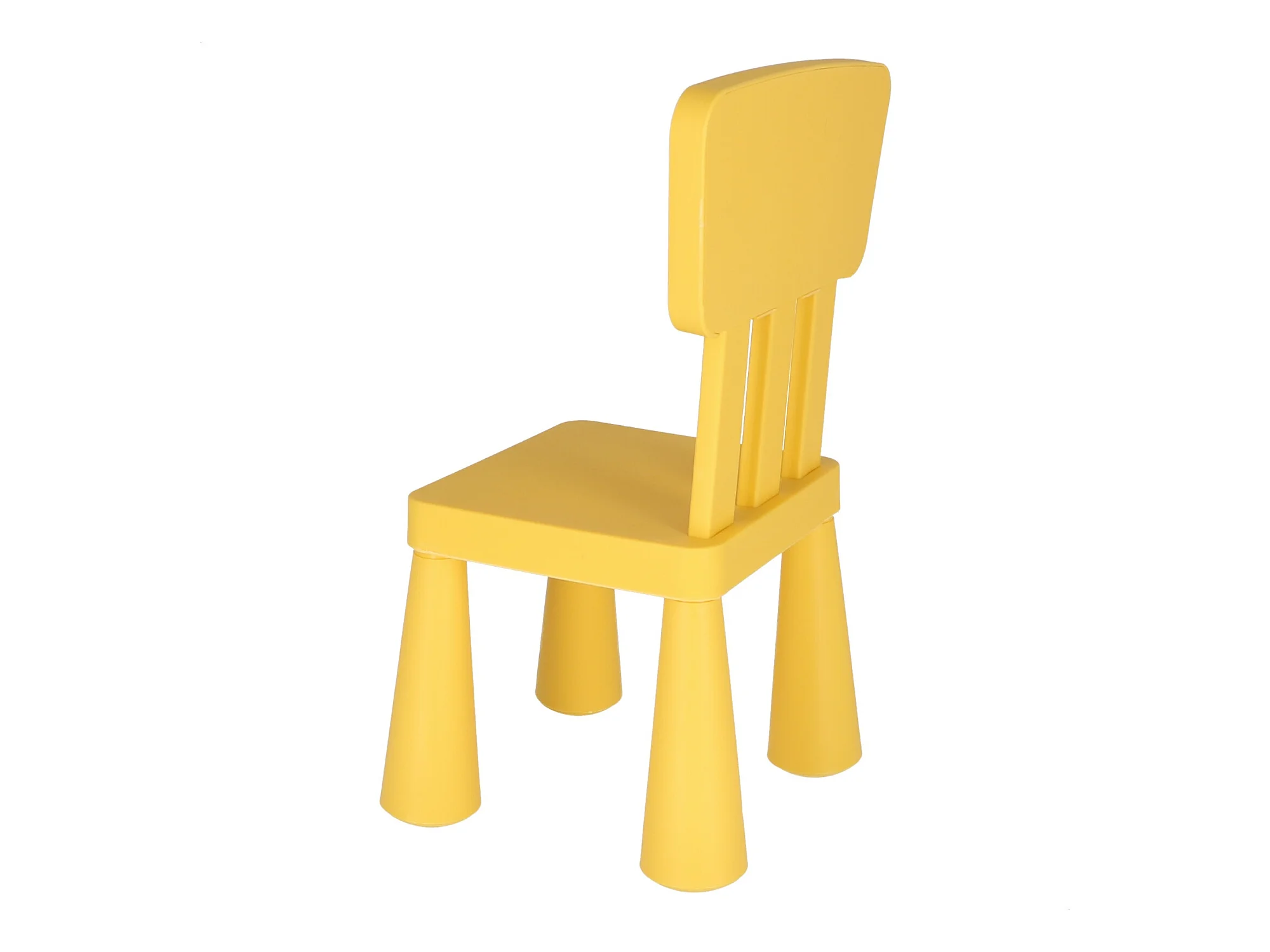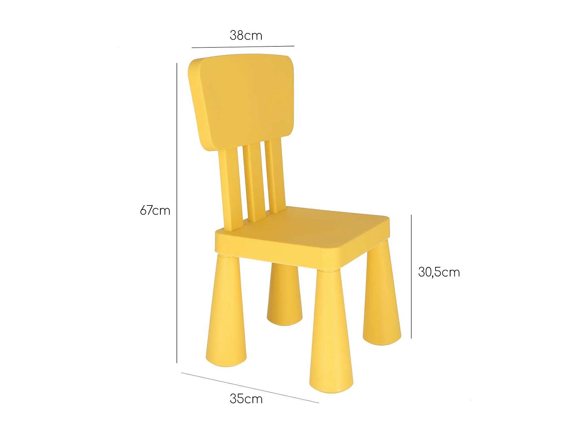 Chaise d'enfant jaune en plastique solide et résistant, L:38 cm x F:35 cm x H:67 cm