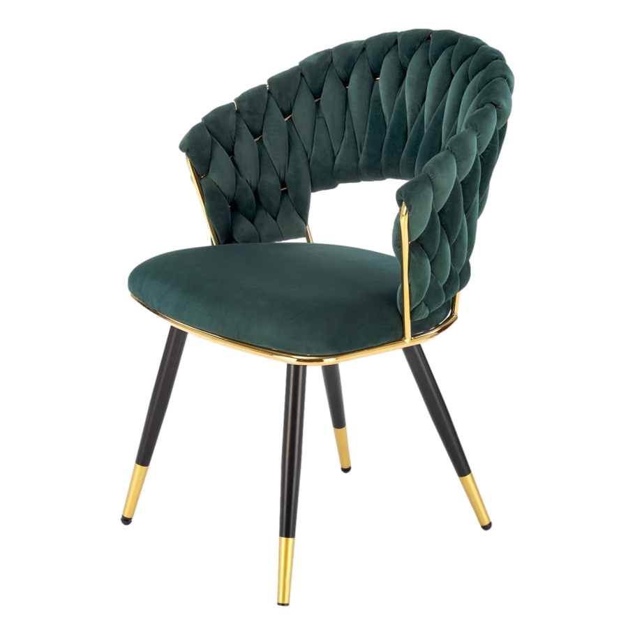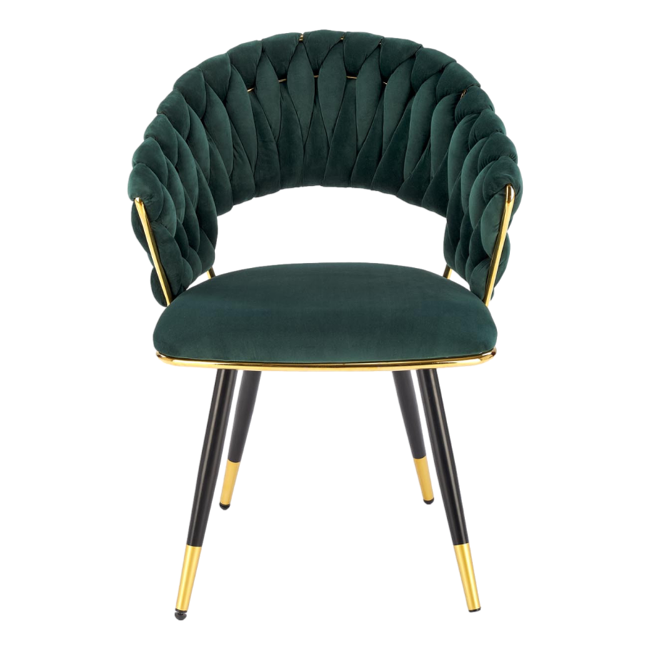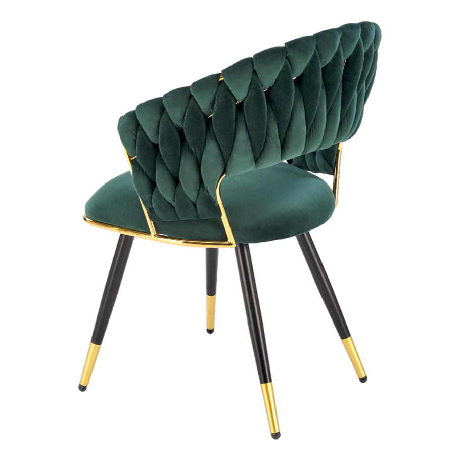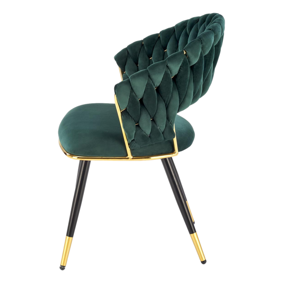 Chaise design en velours vert avec piètement doré et noir Amapola