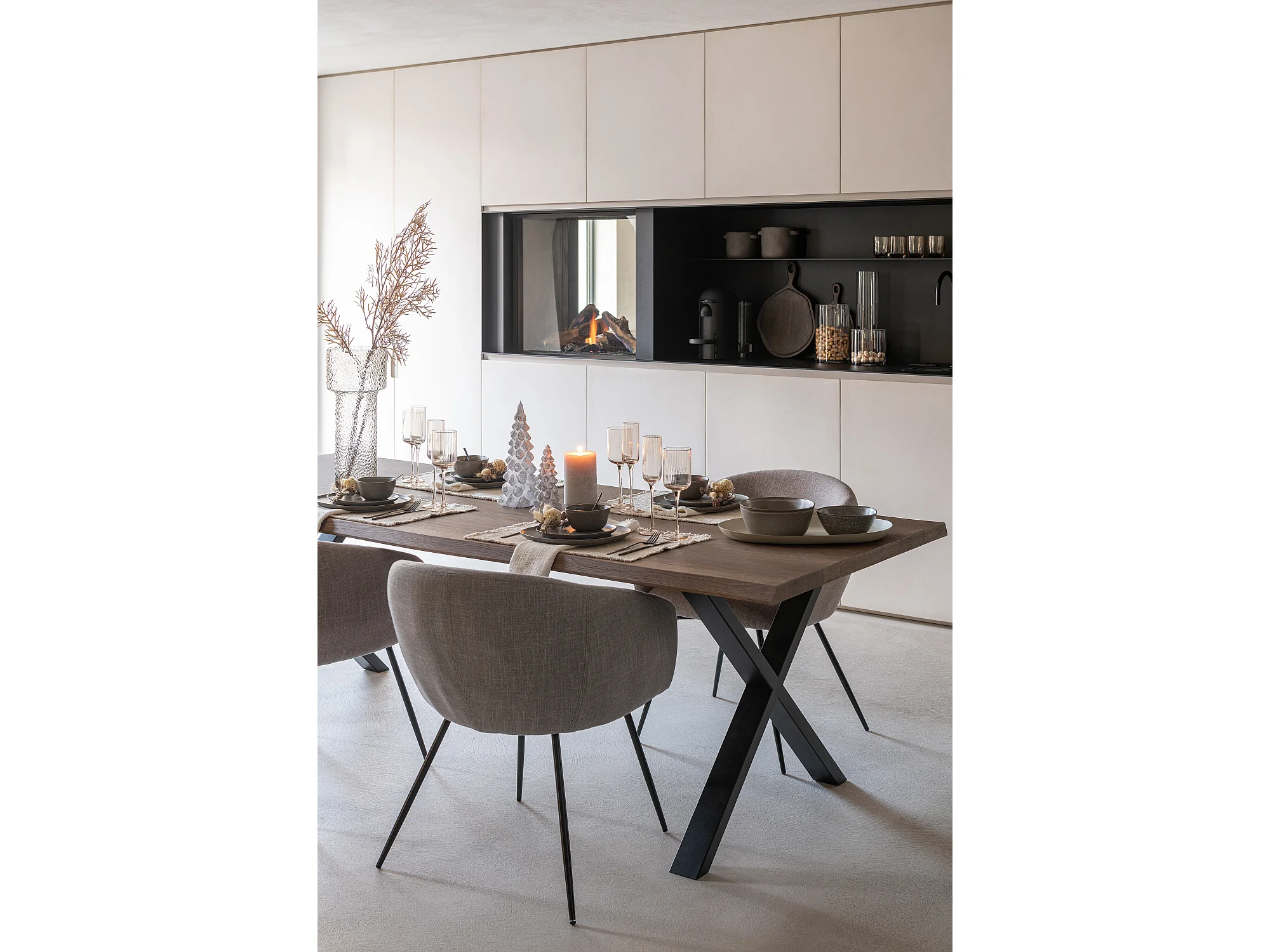 Chaise design WALES – Confort moderne en tissu et métal noir-Gris
