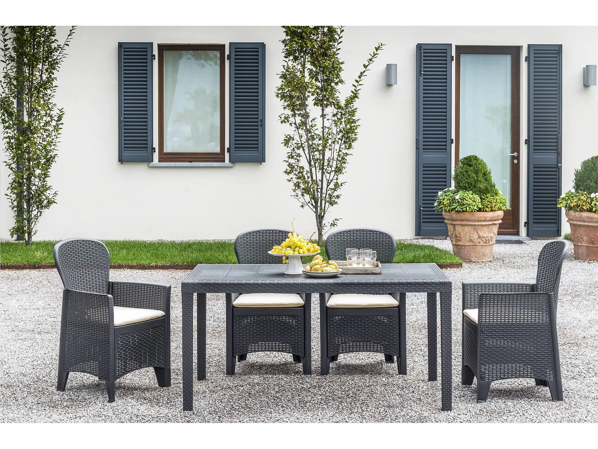 Lot de 4 chaises d'extérieur Viterbo, Sièges de jardin, Chaise de table à manger, Fauteuil d'extérieur effet rotin, 100% Made in Italy, 54x60h82 cm, Anthracite