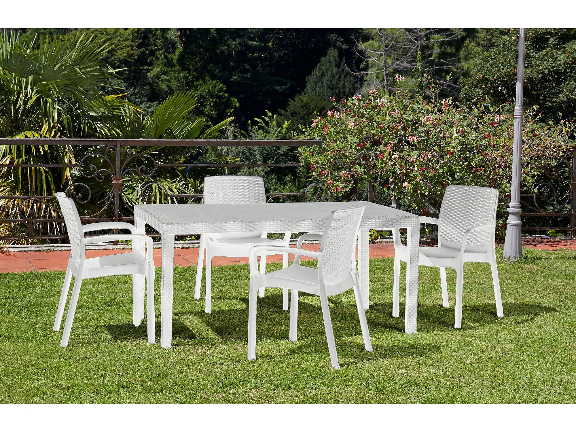 Ensemble de 4 chaises d'extérieur Dnardin, Sièges de jardin, Chaise de table à manger, Fauteuil d'extérieur effet rotin, 100% Made in Italy, 54x60h82 cm, Blanc