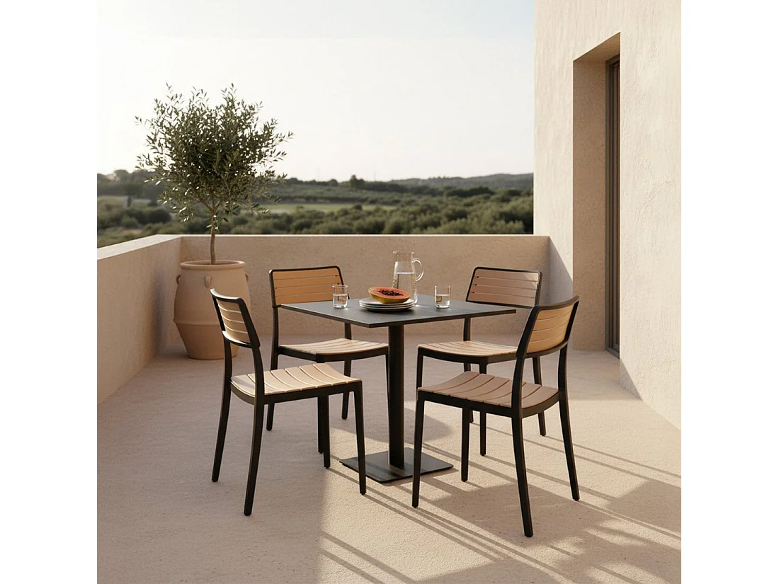 Chaise d'extérieur en plastique noir-naturel 41x81 cm-Hilda