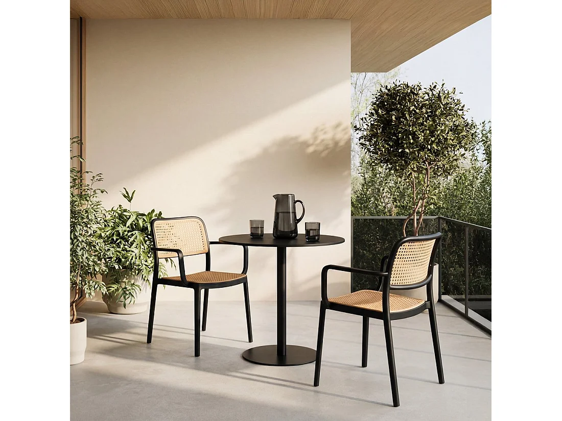 Chaise d'extérieur en plastique noir-naturel 57x81 cm-Kaira