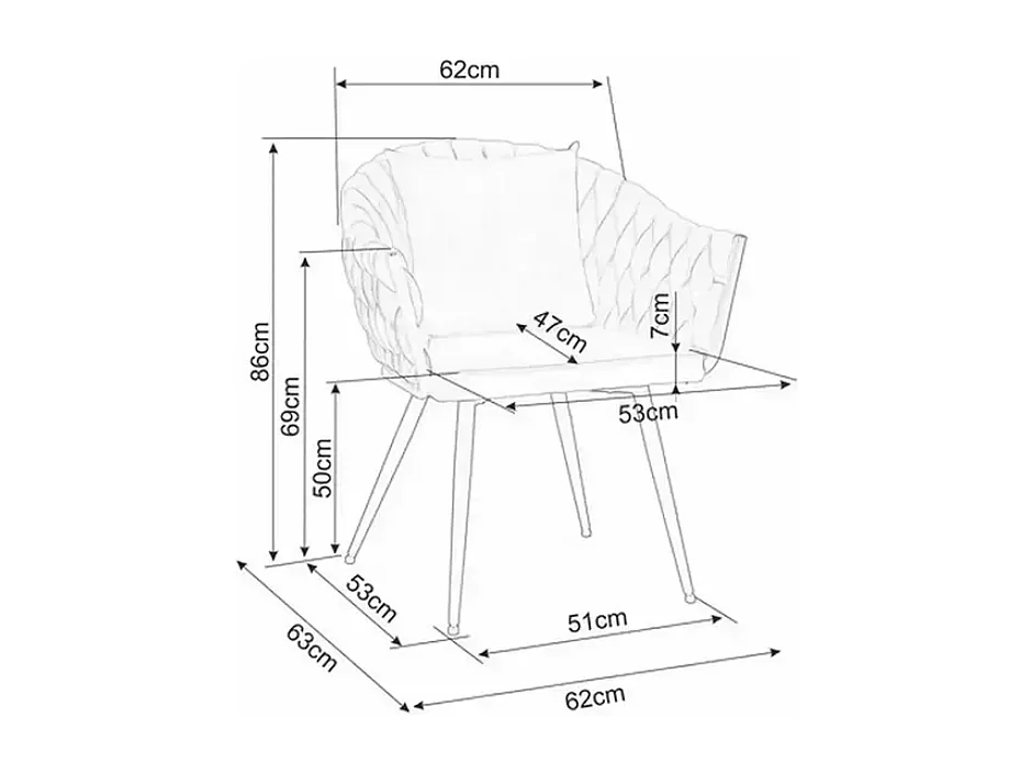 Chaise dossier matelassé velours beige avec coussin décoratif NANSY