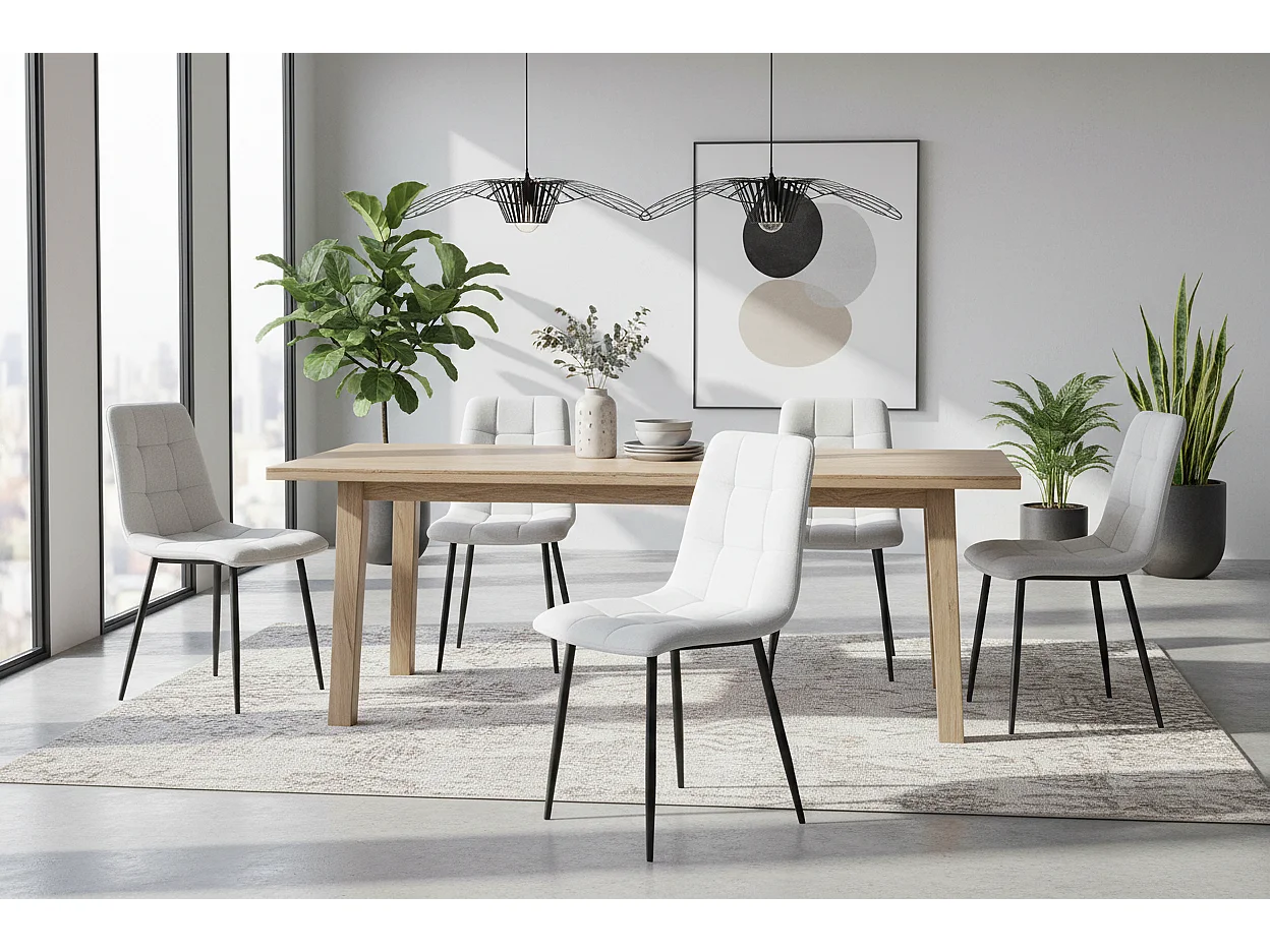 Lot 4 Chaises Salle à Manger Elisa Velours Serge Gris Pieds Métal Noir 42x55x87cm