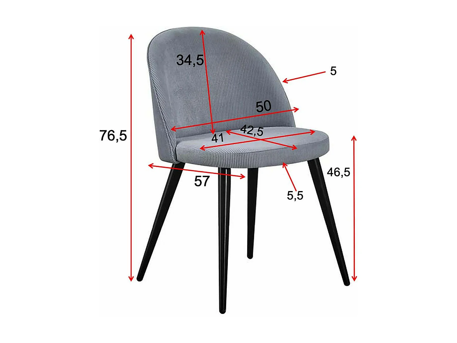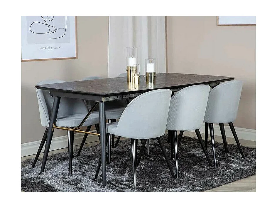 Chaise en acier et velours côtelé gris clair Velvet (Lot de 2)