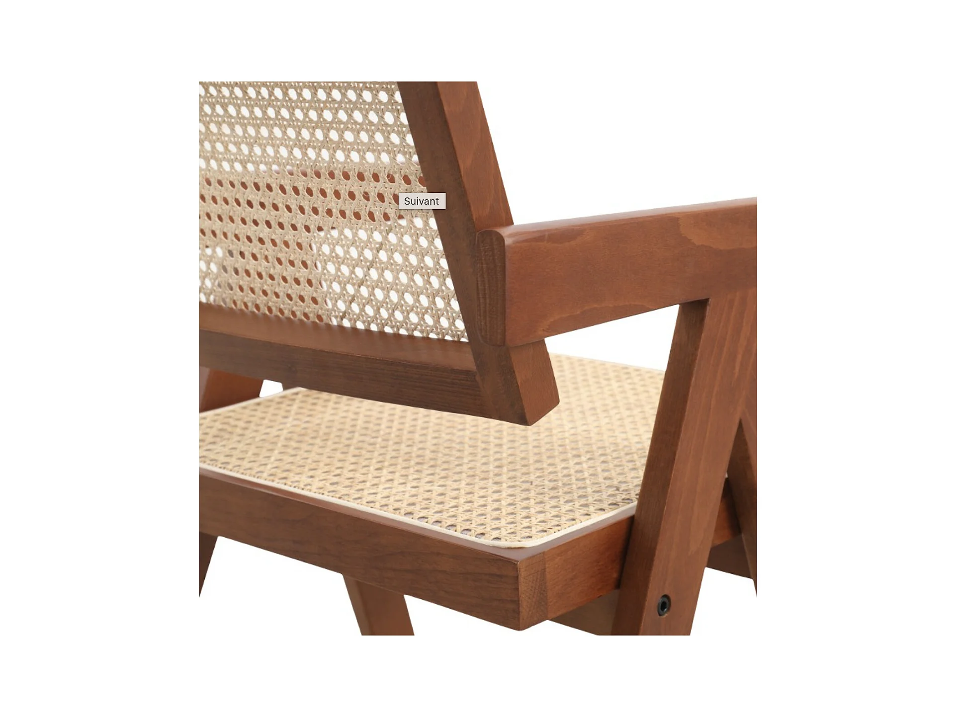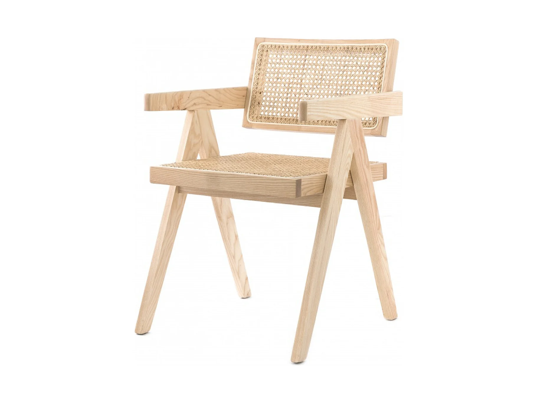 Chaise en bois de Frêne et rotin Landas - Style vintage avec accoudoirs-Couleur Marron