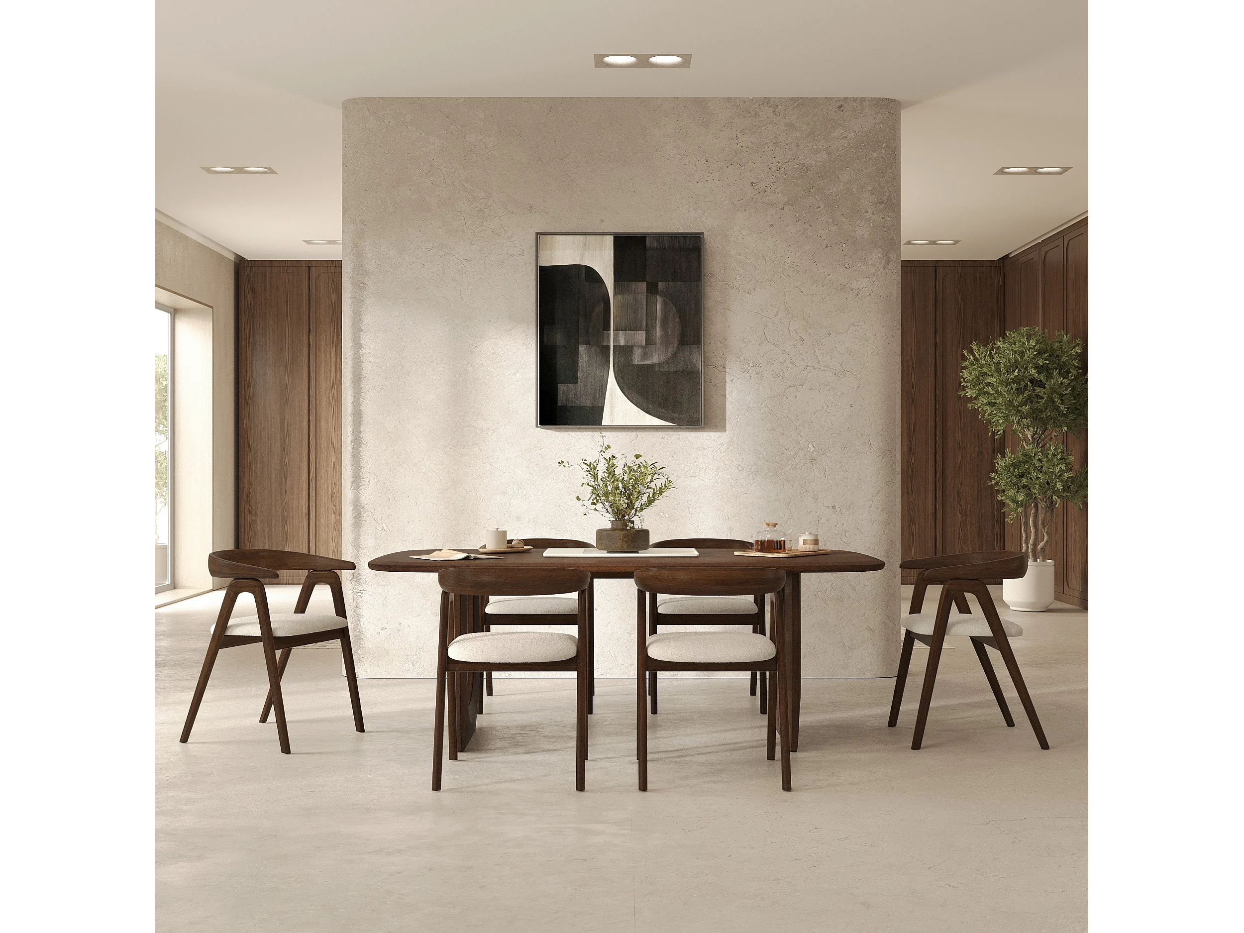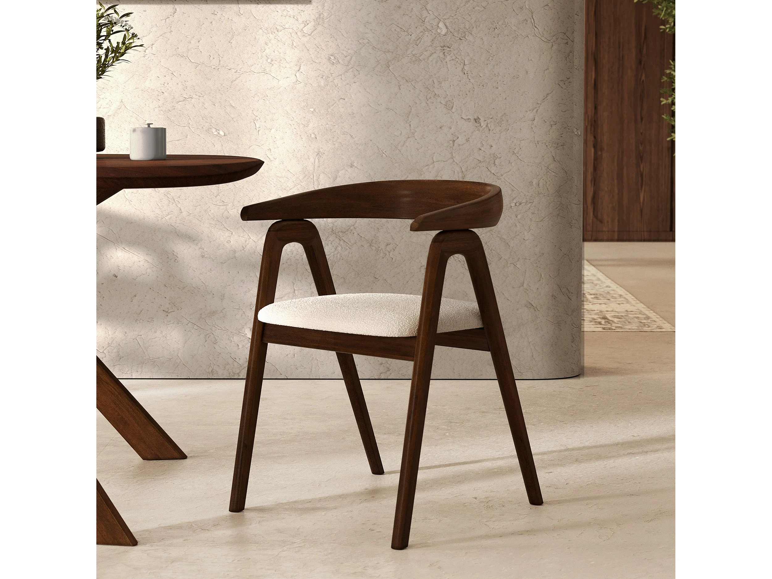 Chaise en bois d'hévéa foncé et tissu bouclé crème - Hawa